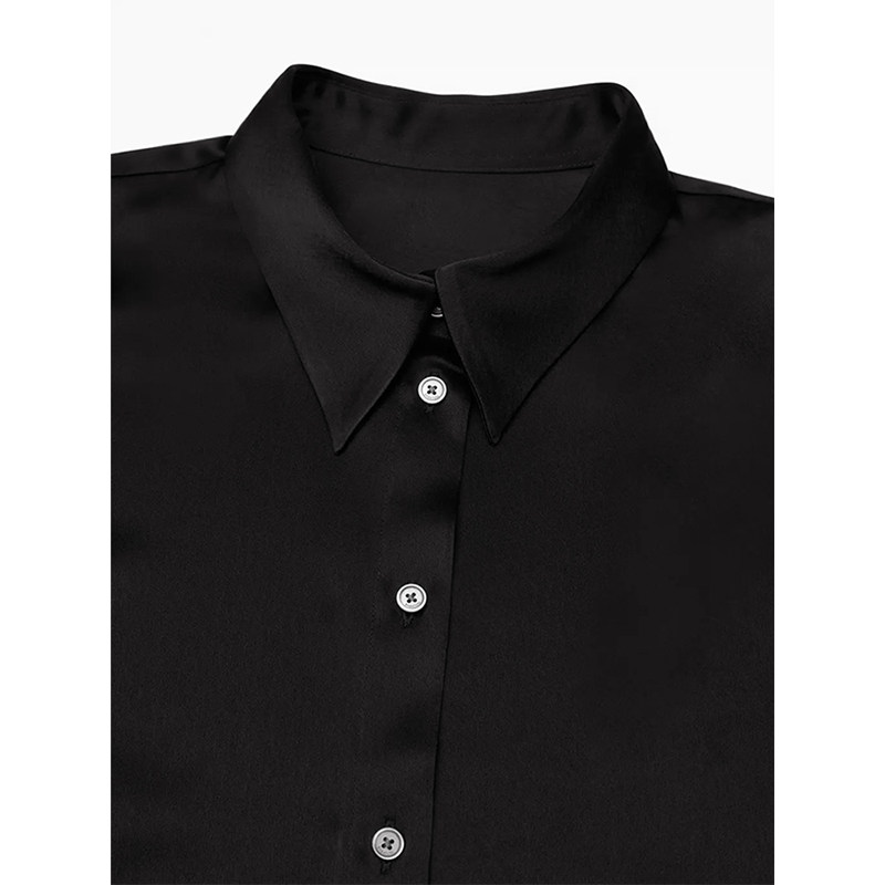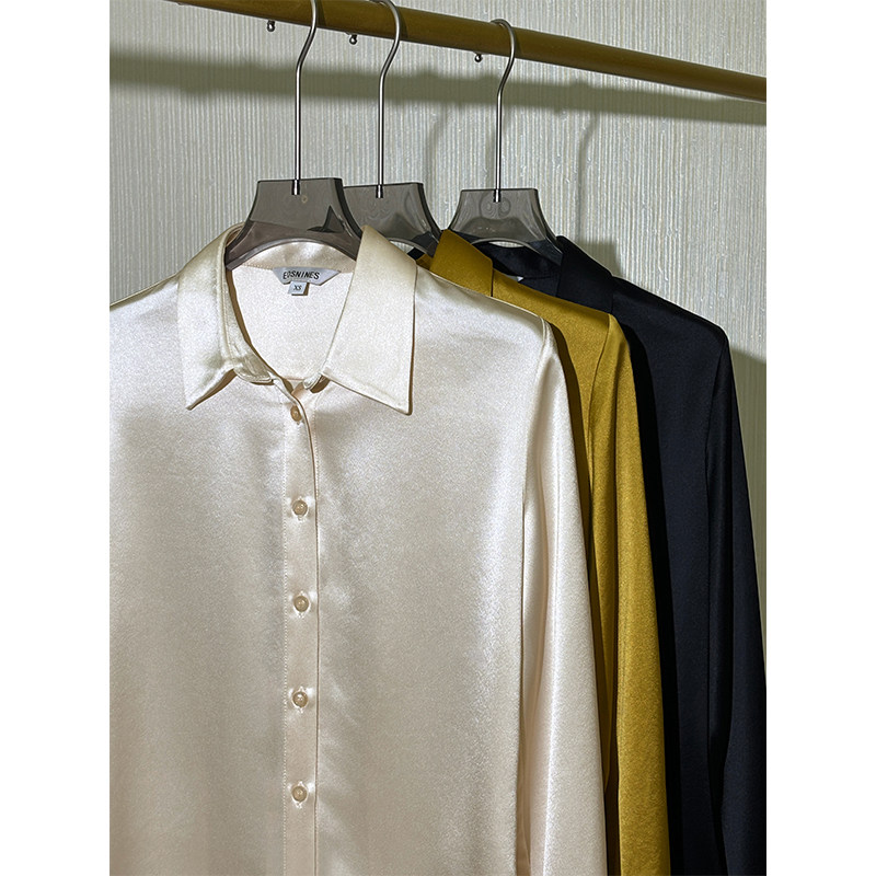 春秋新款简约通勤高级重磅珠光缎面醋酸衬衫女垂感显瘦长袖衬衣