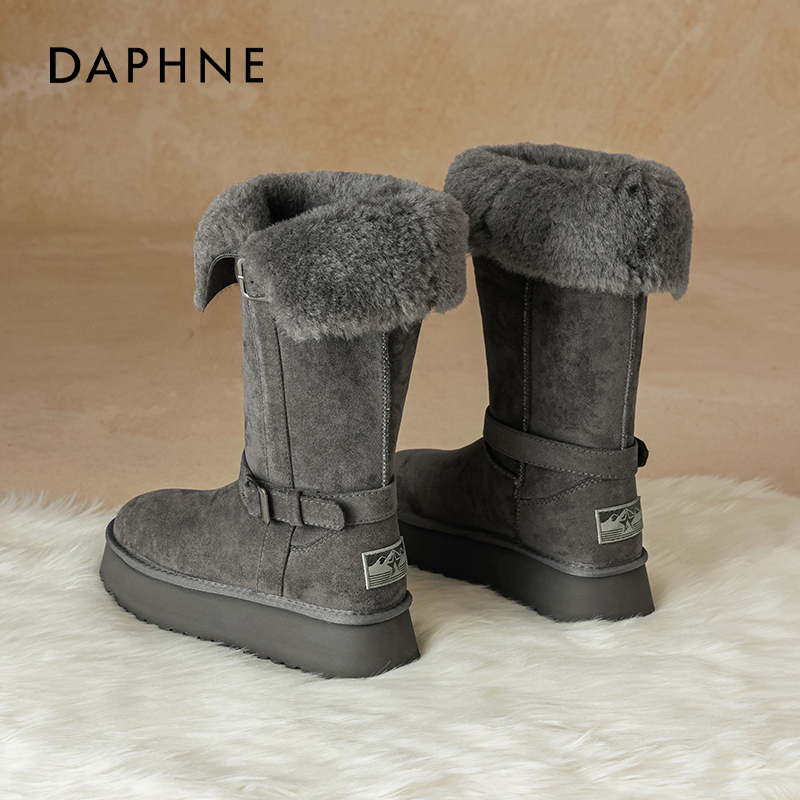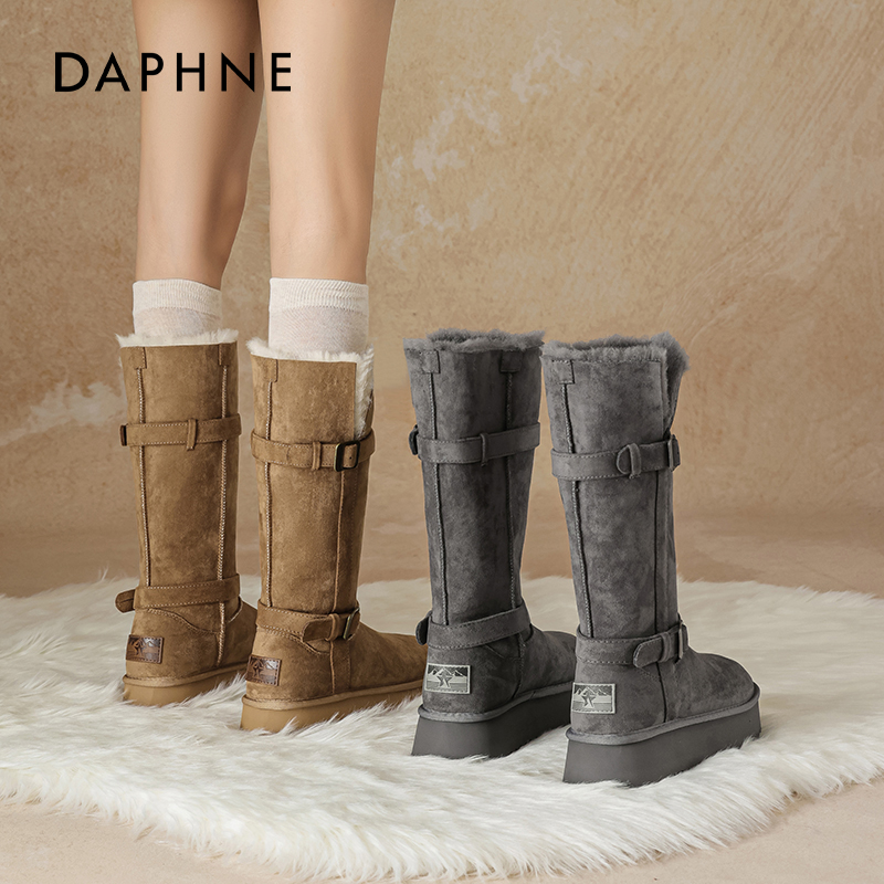 达芙妮雪地靴长筒女款2025新款冬季加绒加厚保暖棉鞋厚底东北长靴