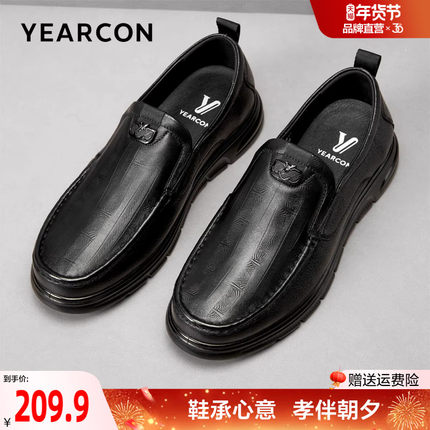 意尔康男士皮鞋羊皮2025新款春秋舒适厚底软底休闲爸爸皮鞋男鞋款