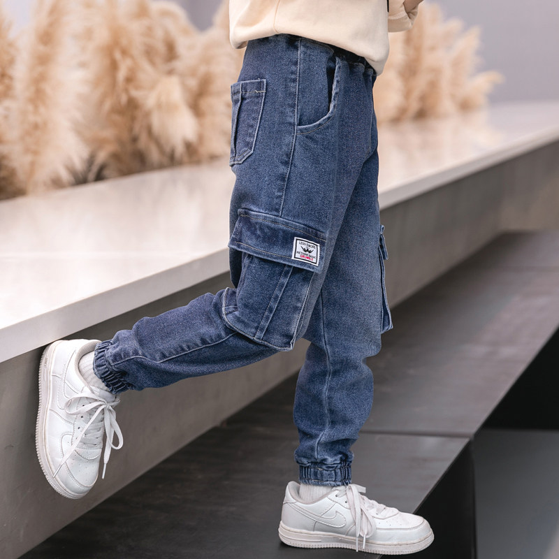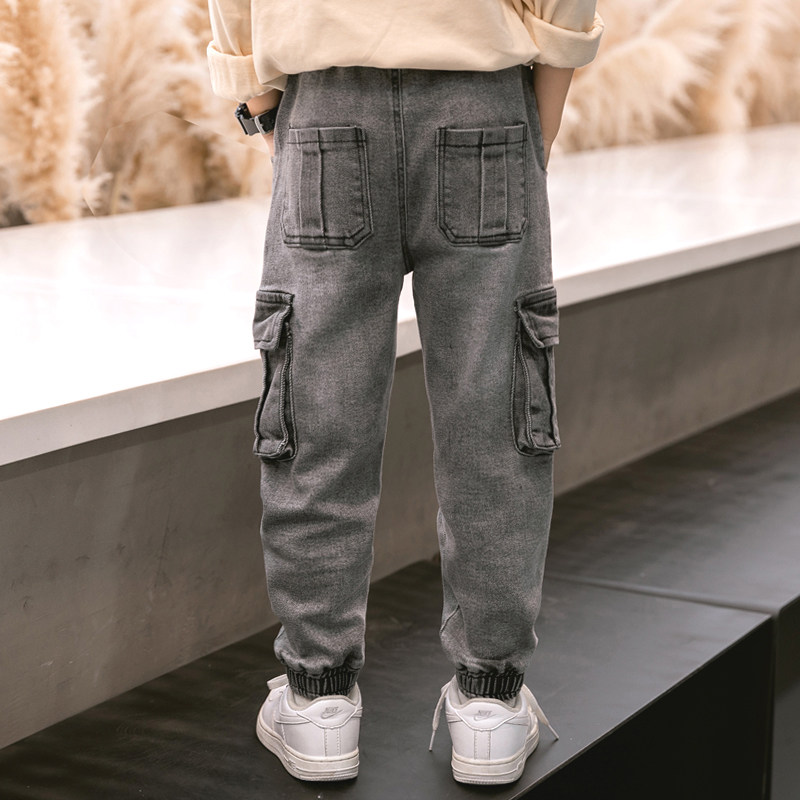 男童秋冬季加绒工装牛仔长裤中大童宽松儿童韩版休闲裤男孩裤子潮