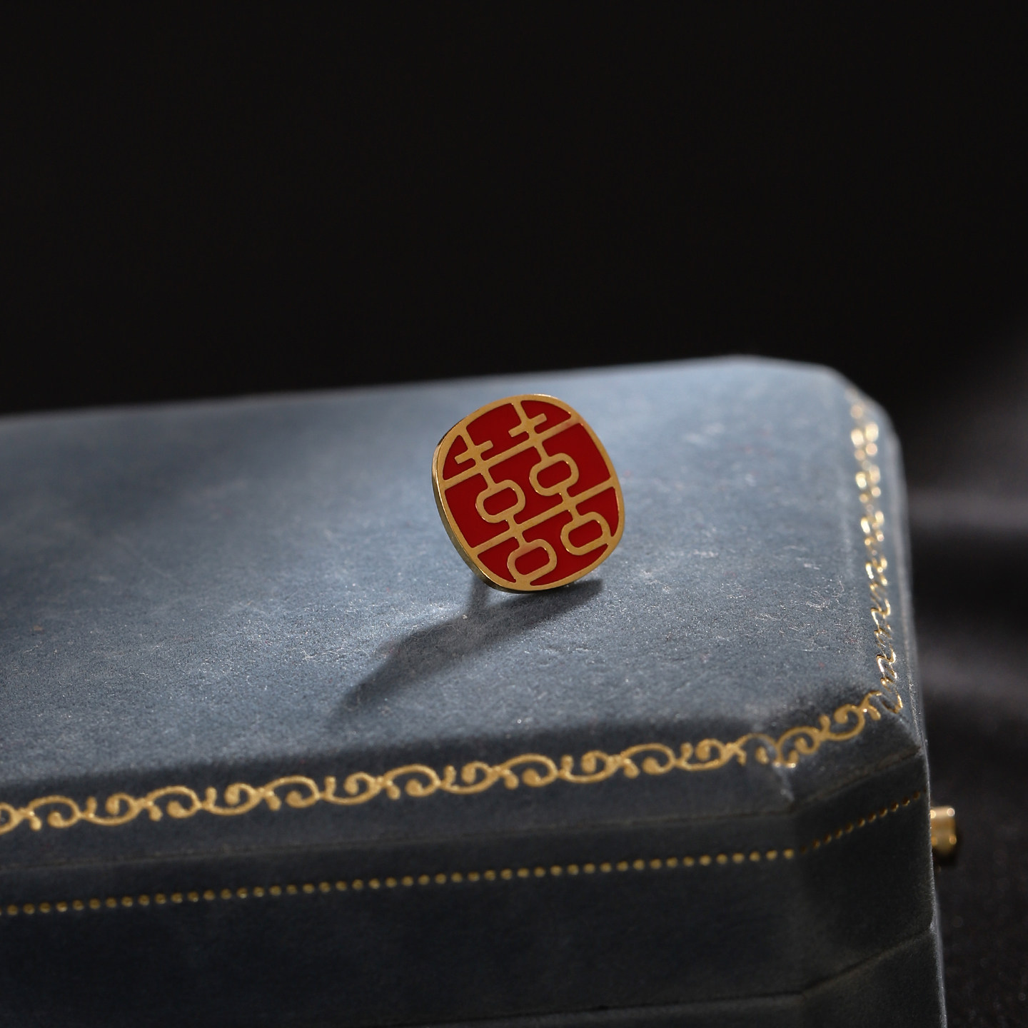 结婚红色喜字胸针无痕磁吸西装礼服领证登记男女情侣配饰精致徽章