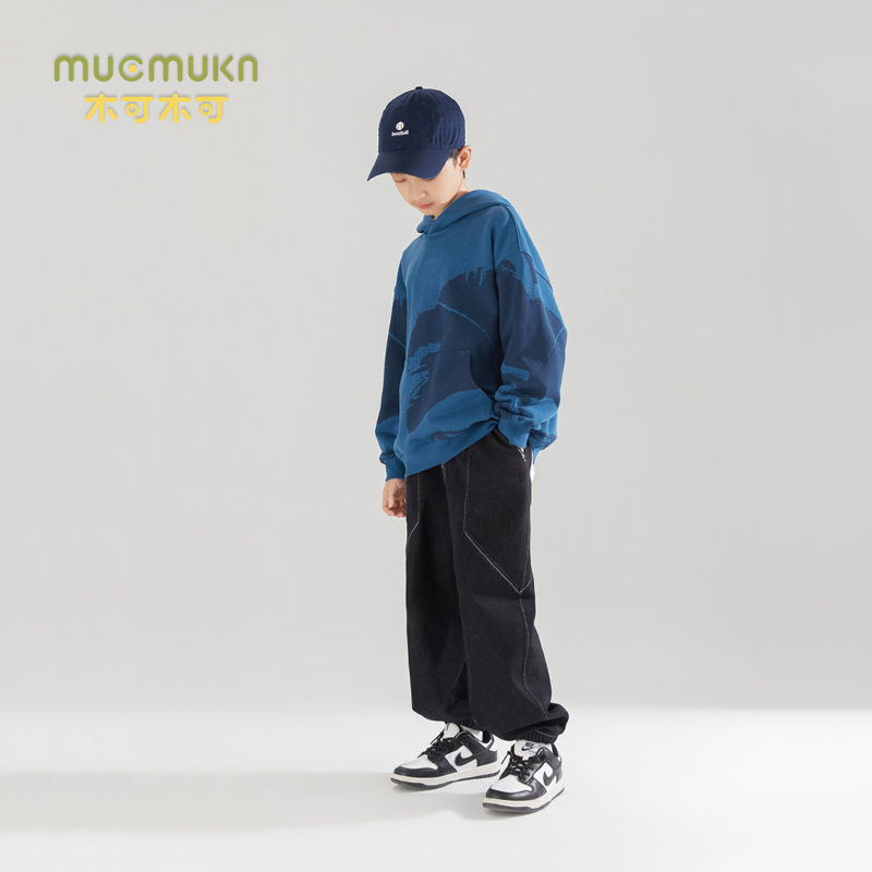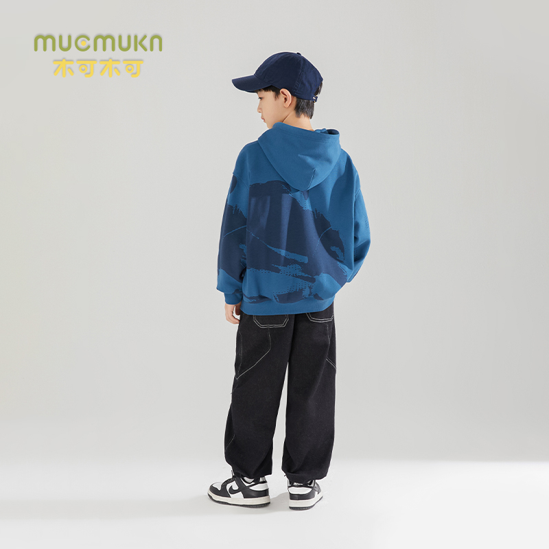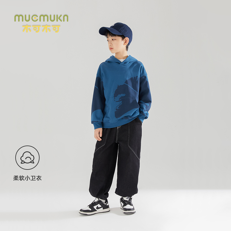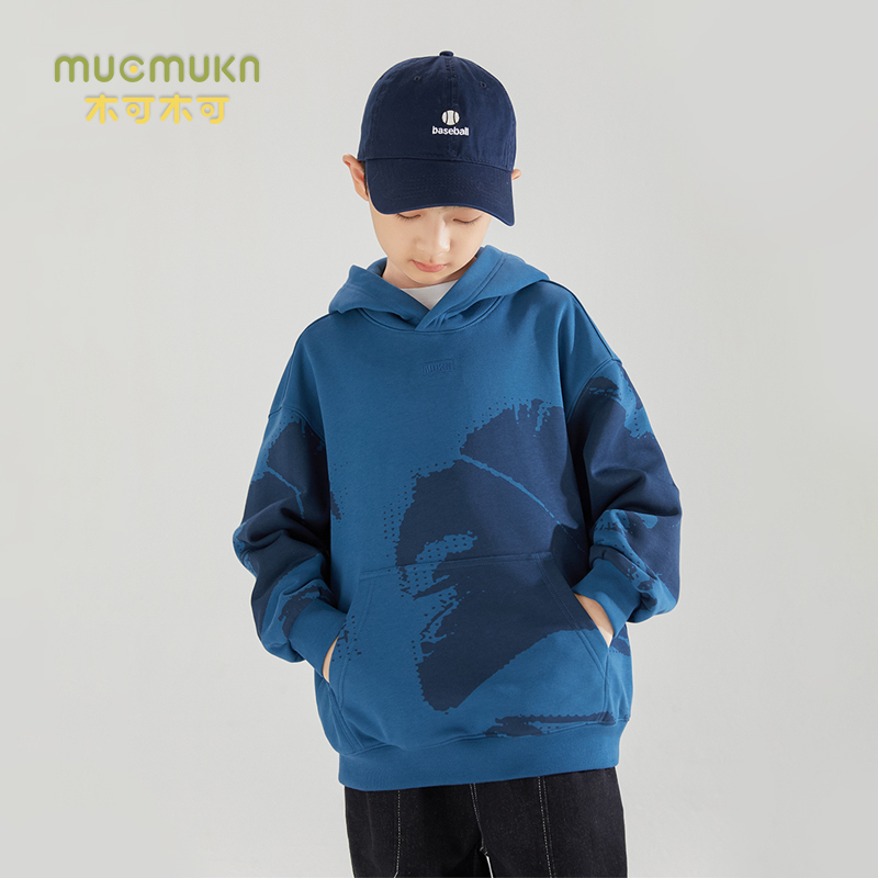 男童秋连帽蓝色卫衣外套休闲宽松透气中大儿童洋气早秋上衣潮