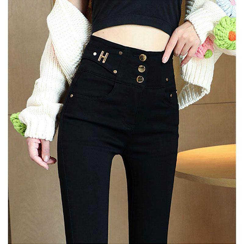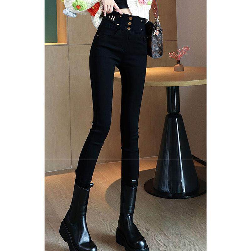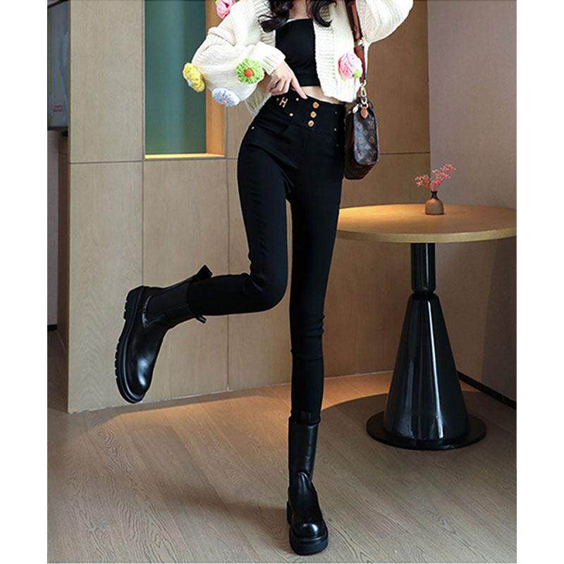 黑色小脚打底裤女秋冬新款韩系外穿高腰修身显瘦百搭魔术铅笔长裤