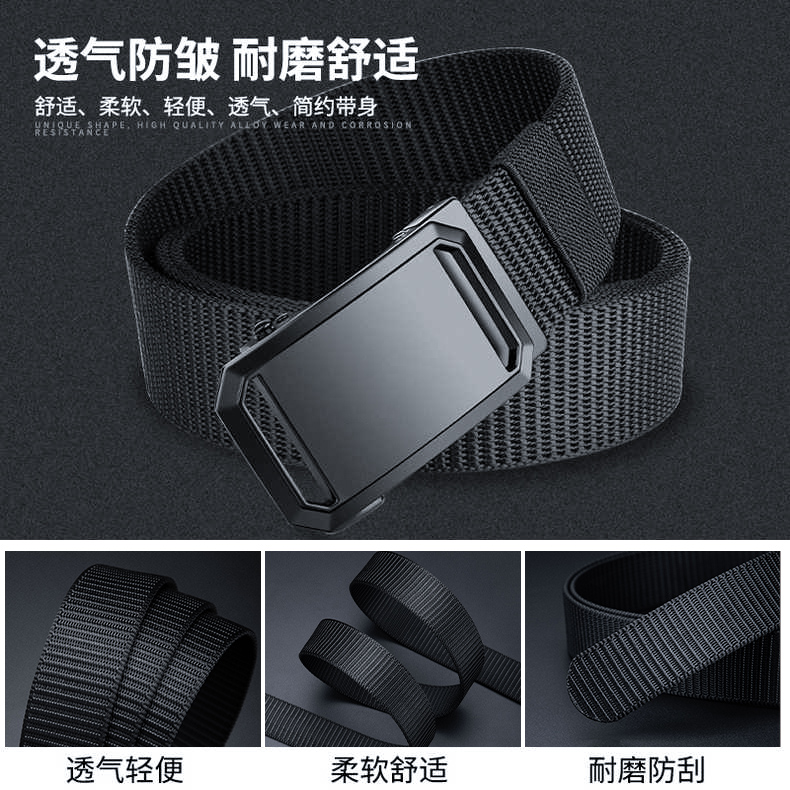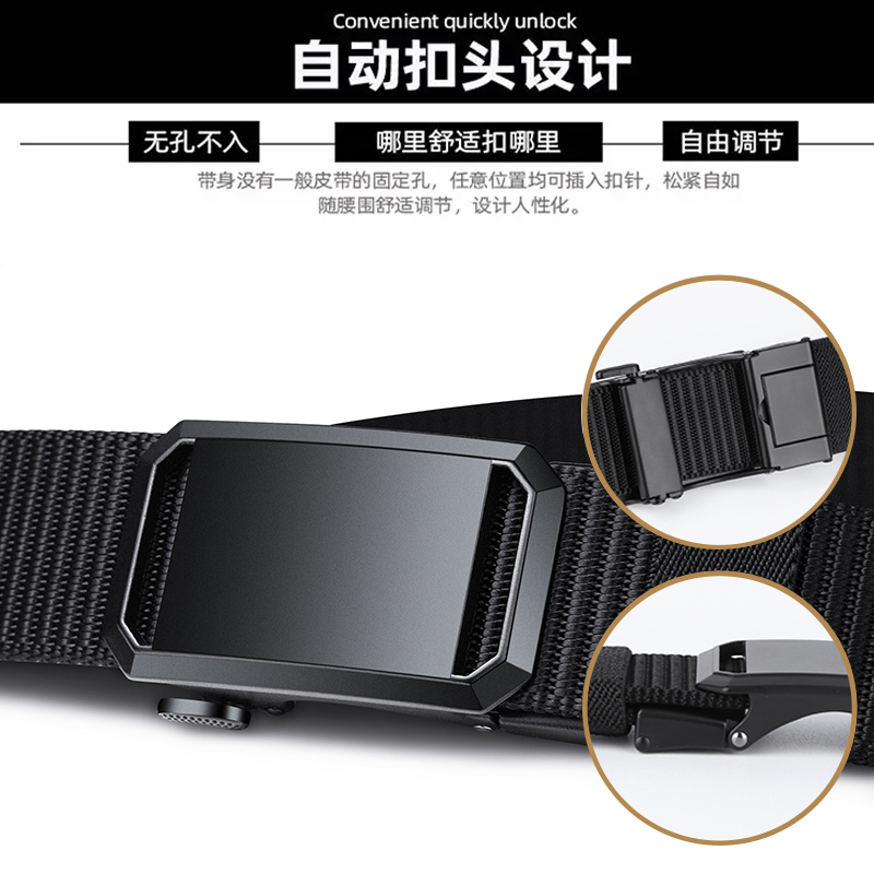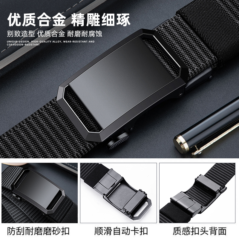 新款皮带男无牙无孔自动扣帆布户外休闲裤腰带商务西裤牛仔裤百搭