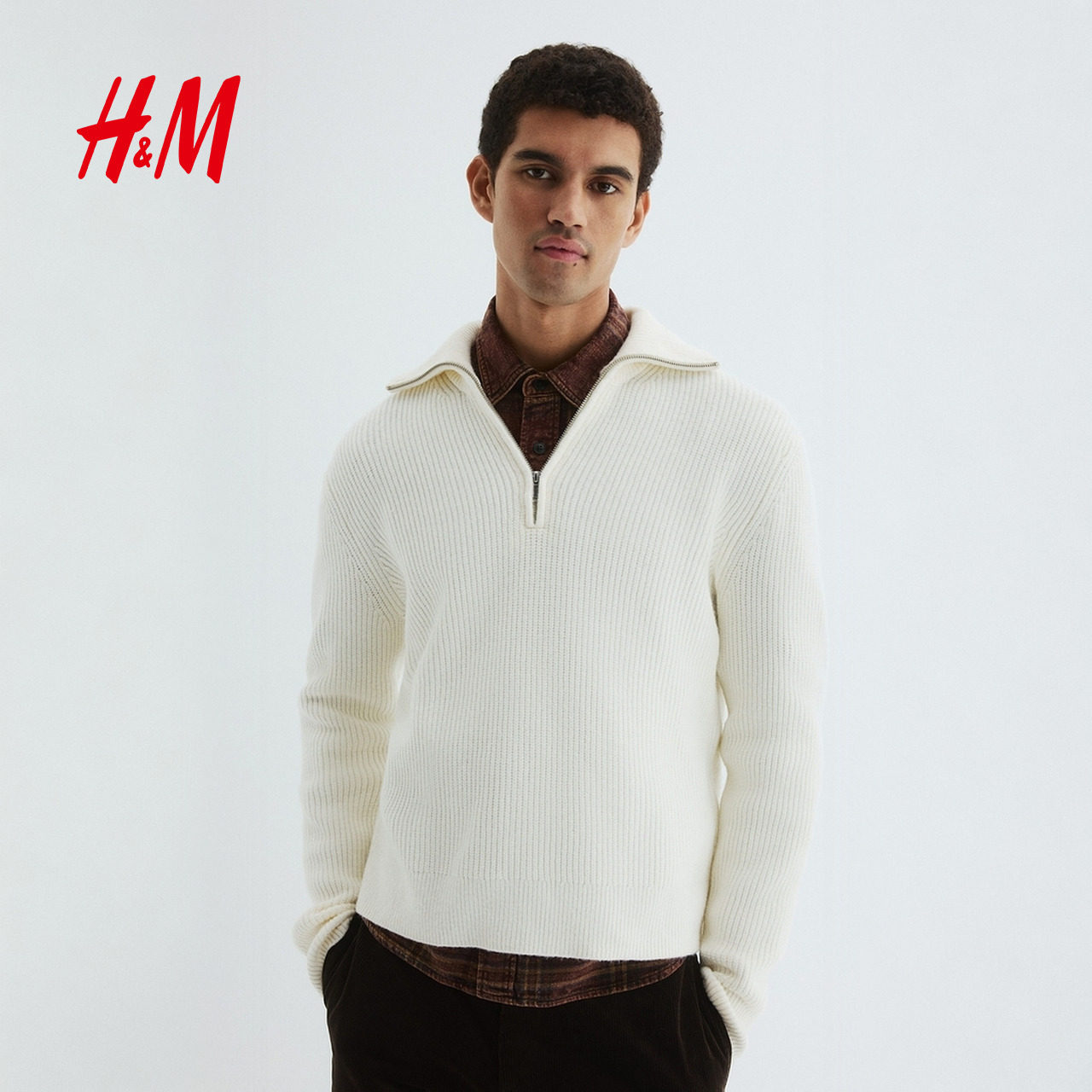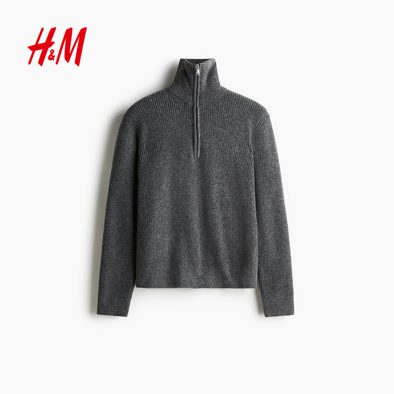 HM男装针织衫2025年新款半拉链毛衣时尚保暖标准版套衫1300434