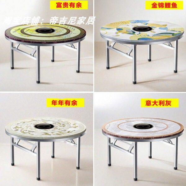 不锈钢内置转盘电磁炉火锅桌打边炉圆桌吃饭桌圆台餐桌可折叠免装