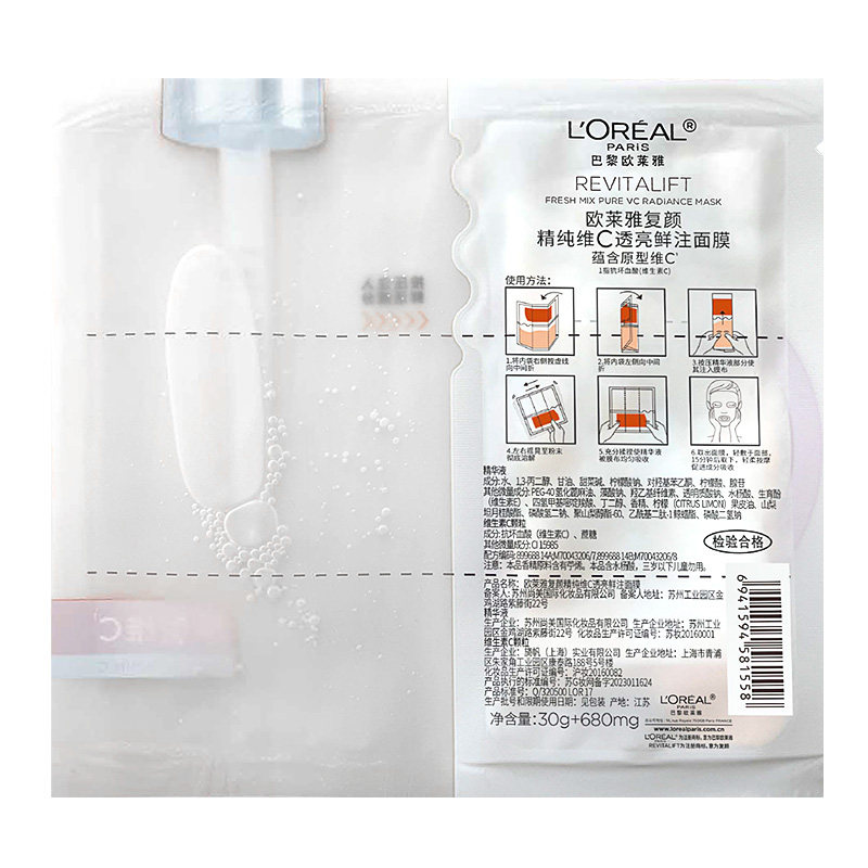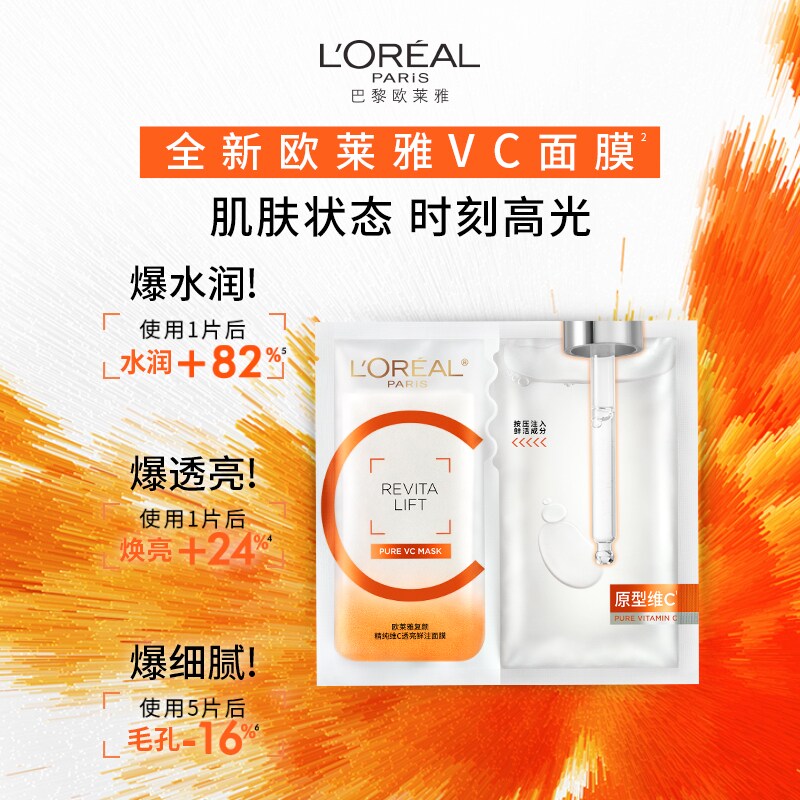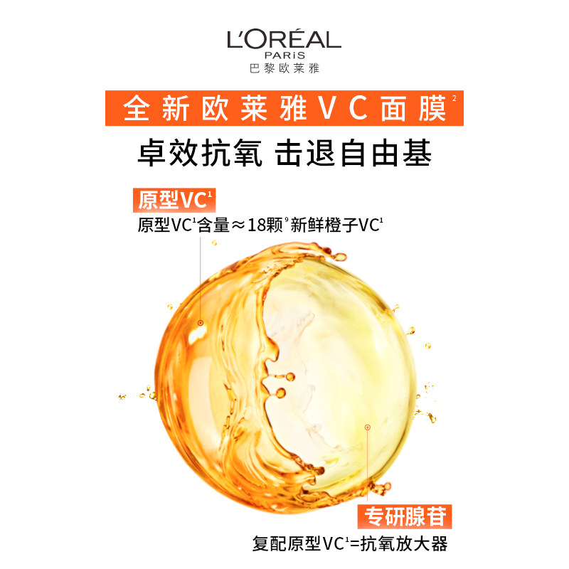 欧莱雅VC面膜维C抗氧提亮细腻肌肤补水保湿紧致修护舒缓护肤品