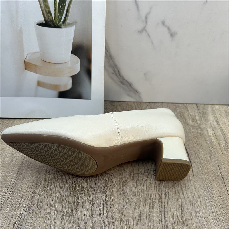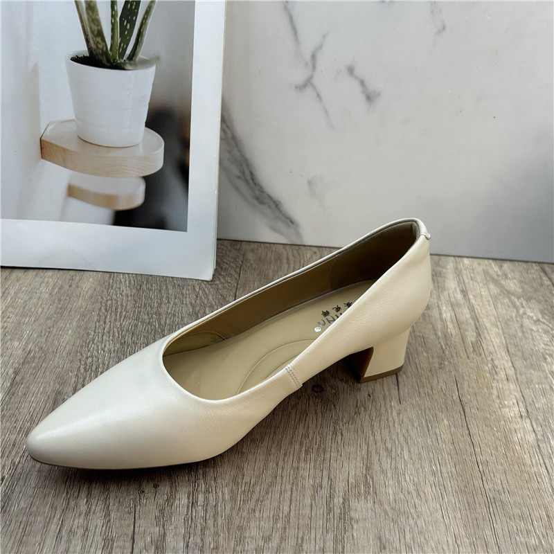 2025新款真皮女鞋时尚休闲鞋牛皮尖头浅口中跟粗跟浅口女单鞋子
