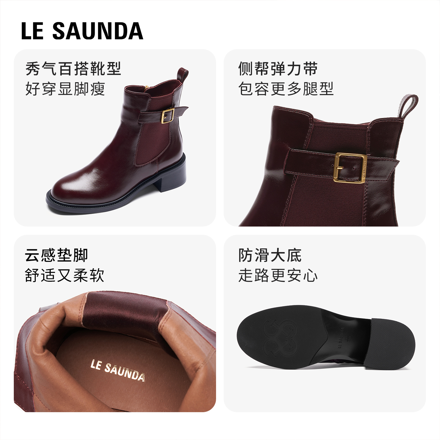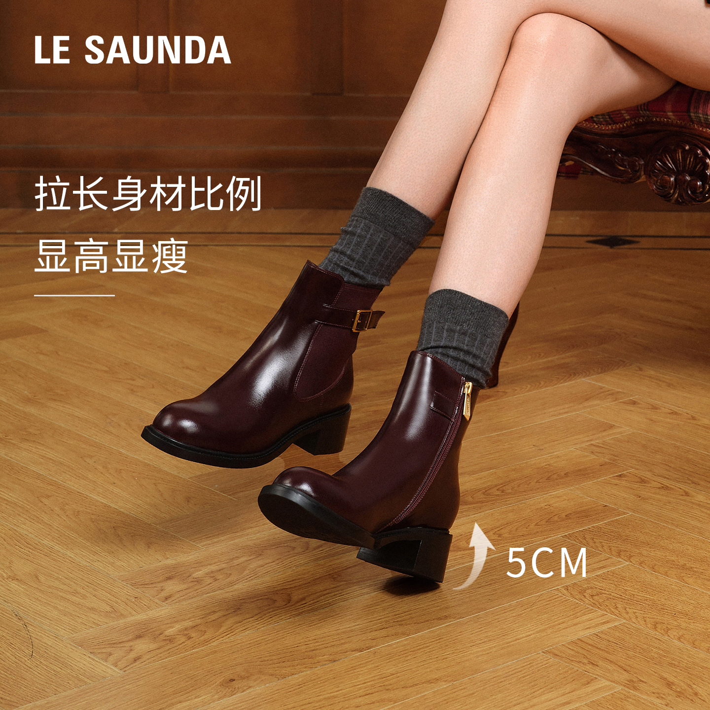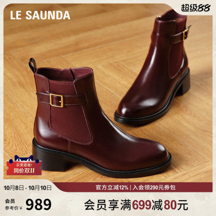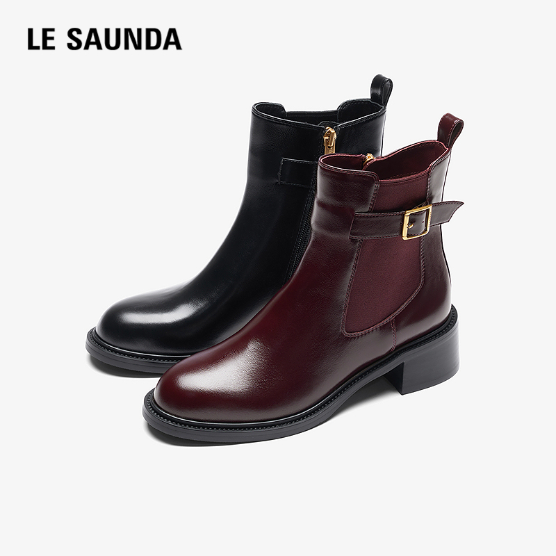 莱尔斯丹海德公园25秋冬新款真皮粗跟黑色切尔西短靴子女鞋54501