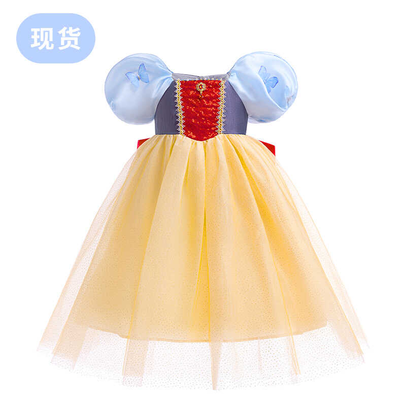 迪士尼电影女童白雪公主裙夏季新款蝴蝶结洋气蓬蓬连衣裙生日礼服