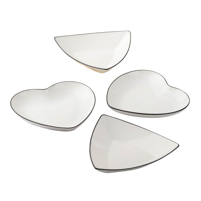 欧式4只装家用陶瓷盘子爱心盘子套装菜盘创意盘异型盘简约圆形盘