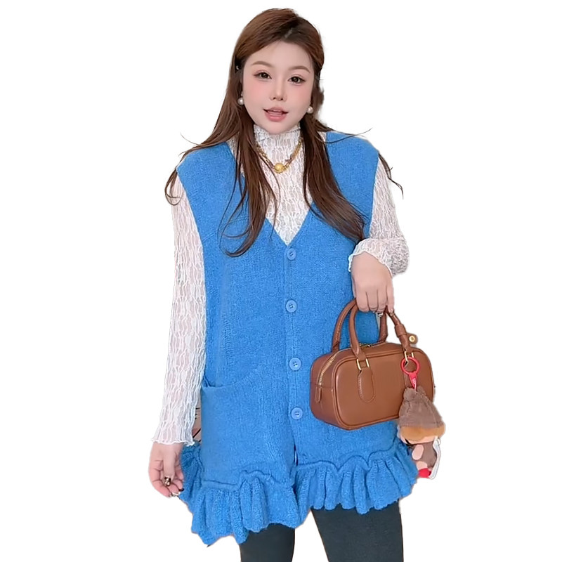 减龄木耳边马甲女打底衫套装胖mm2025冬季新款显瘦宽松大码女装潮