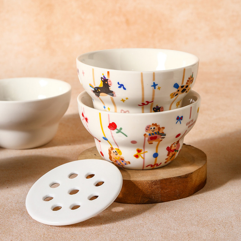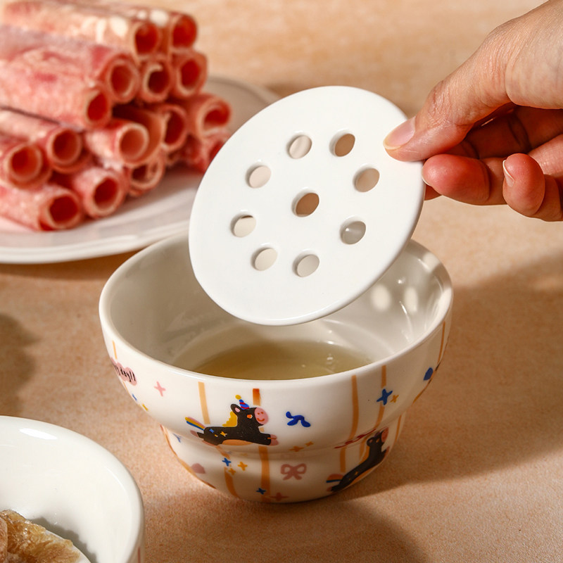 新款可爱马陶瓷沥油碗火锅店专用碗餐饮商用沥水蒸碗单人火锅餐具