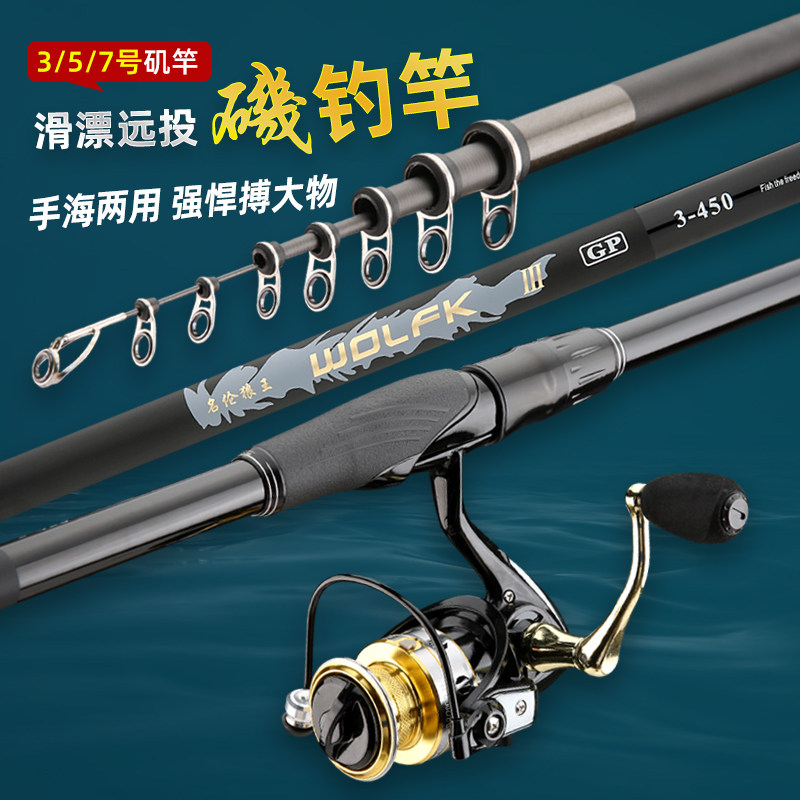 名伦狼王矶竿矶钓竿套装超轻超硬长节滑漂大导环远投竿海杆钓鱼竿
