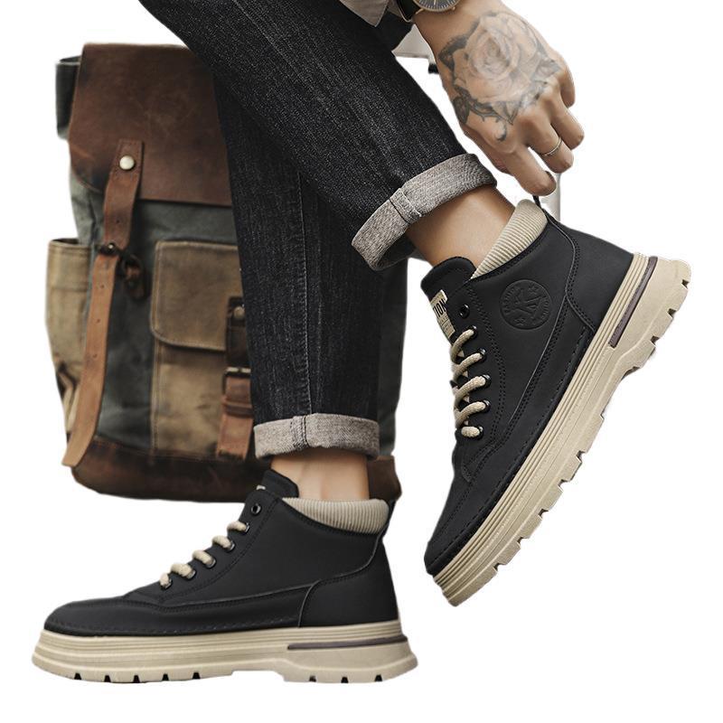 马丁靴男款高帮2025秋季新款男士英伦风复古运动工装防水防滑皮鞋