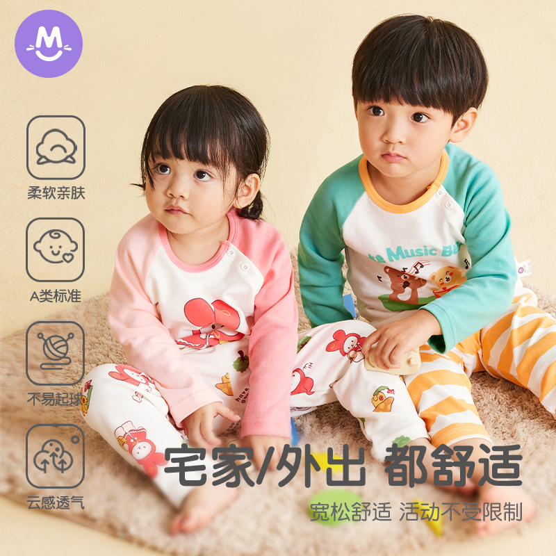 儿童睡衣防着凉秋季纯棉家居服套装男童长袖婴儿幼儿宝宝女童秋衣