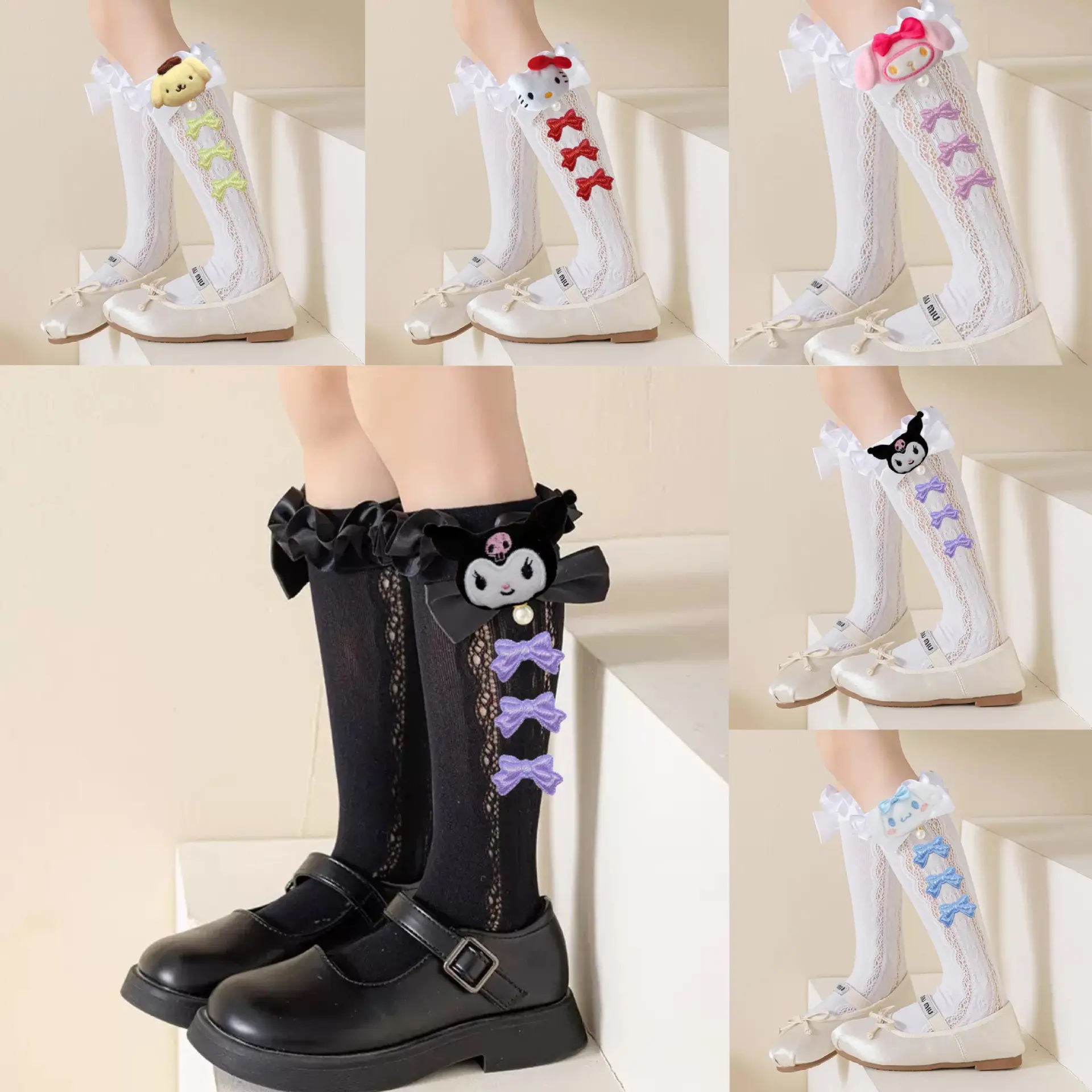 玉桂狗女童洛丽塔花边袜子可爱百搭大耳狗小女孩蝴蝶结蕾丝小腿袜