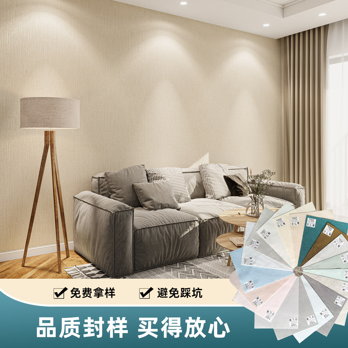 2026高精密墙布无缝全屋卧室客厅素色墙纸奶油背景灰色壁布包安装