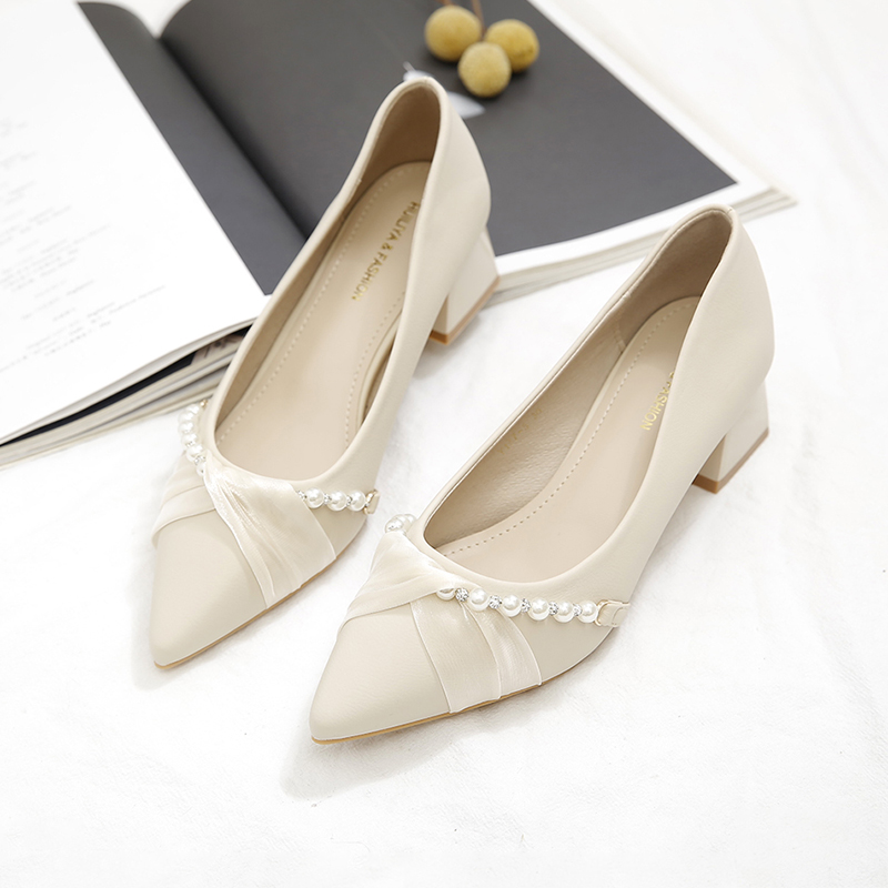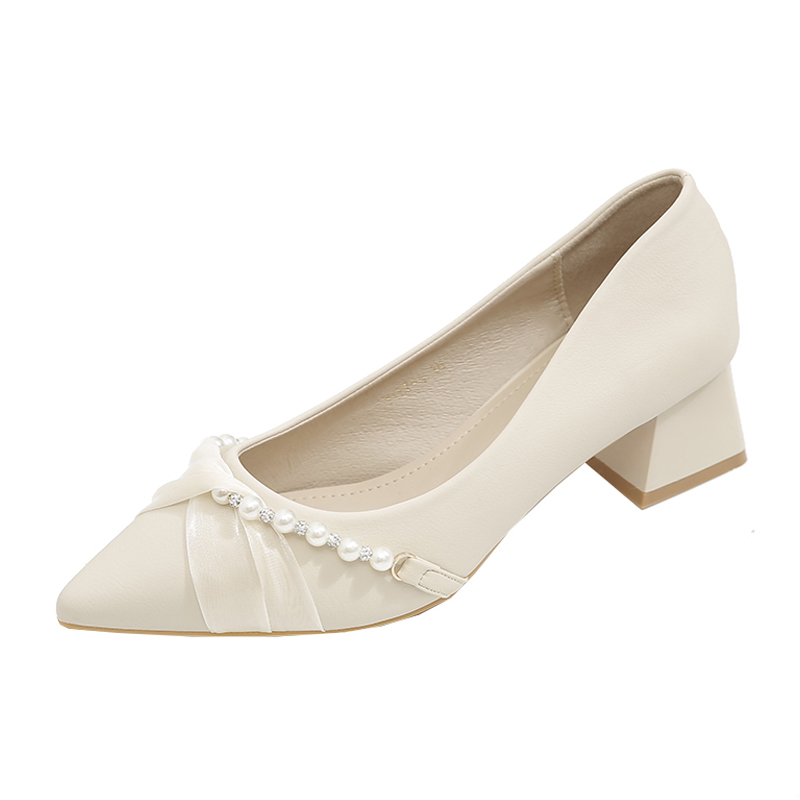 粗跟高跟鞋女软皮软底尖头高跟鞋