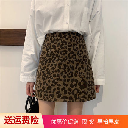 ins超火豹纹短裙女大码半身裙胖mm高腰网红简约A字裙学生显瘦裙秋
