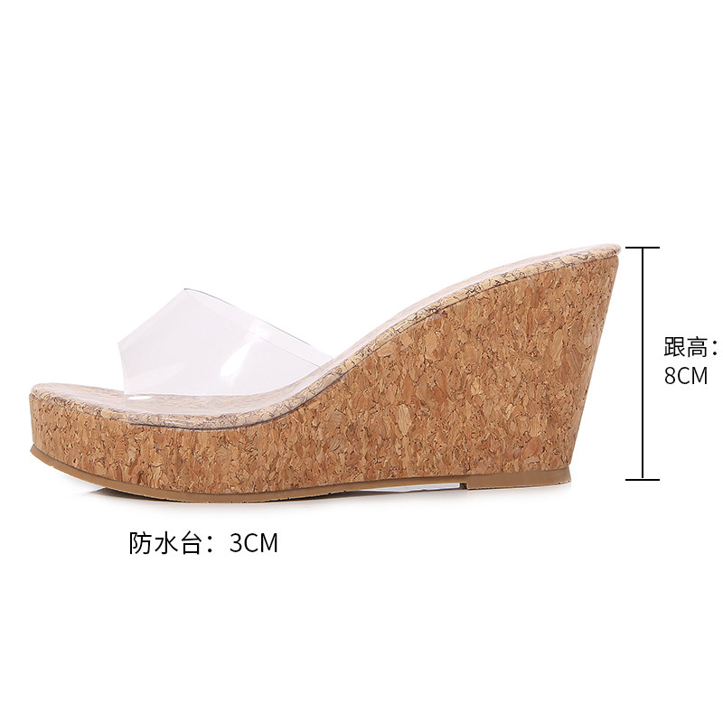 2024夏季新款韩版坡跟高跟防水台女鞋舒适百搭性感豹纹透明凉拖鞋