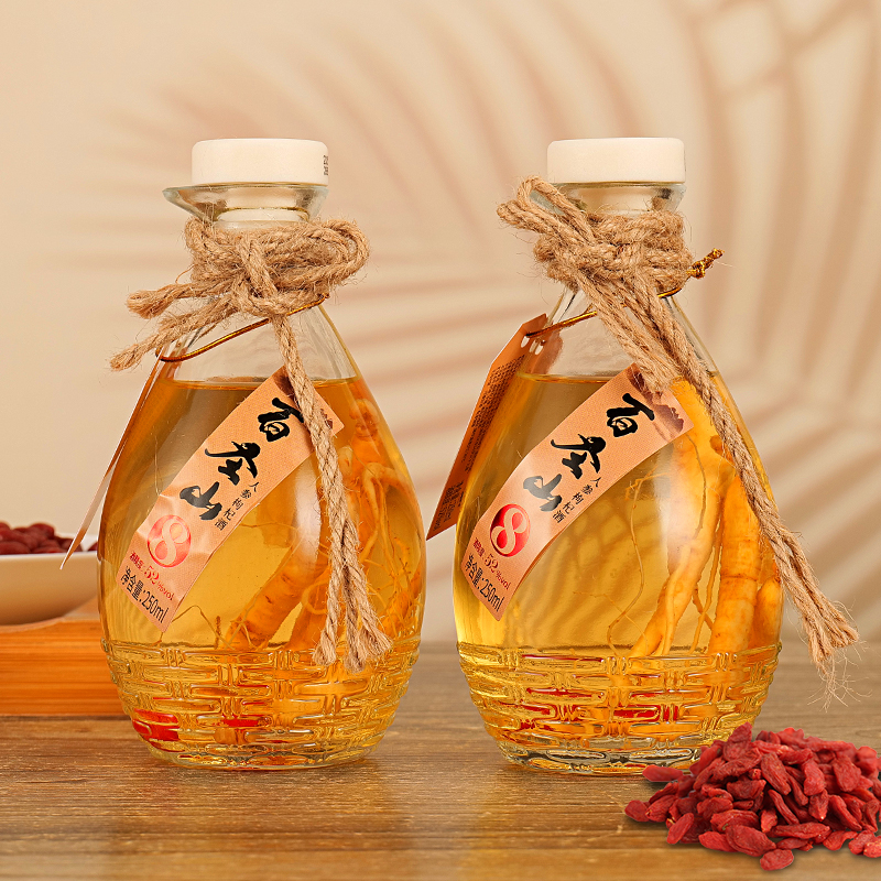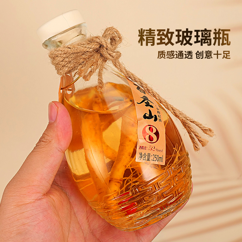 百圣山人参枸杞酒52度250ml*6瓶整箱装粮食酒高度赠送酒杯2只
