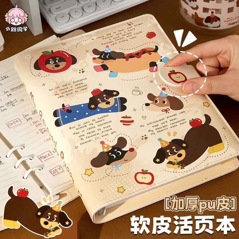 磁吸腊肠小狗PU皮质笔记本子2025年新款高颜值日记本好看的活页本可拆卸A5手账本ins风加厚记事本可爱女生