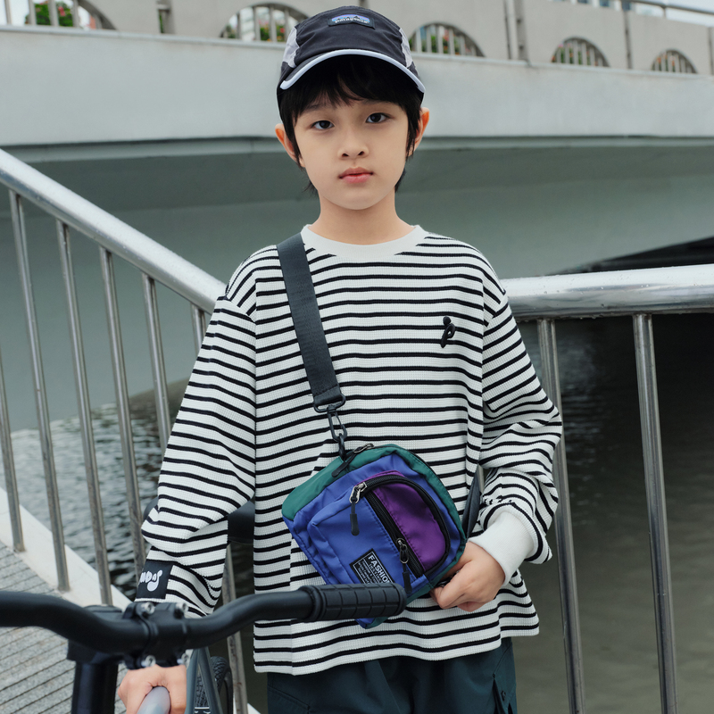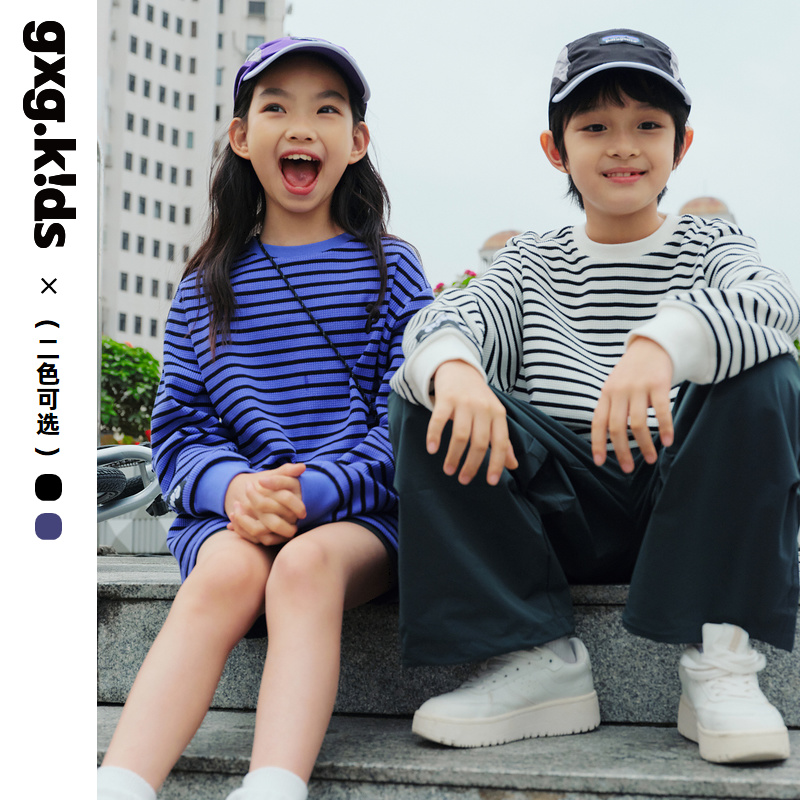 【华夫格】GXG童装春季儿童T恤男女童春装条纹刺绣上衣