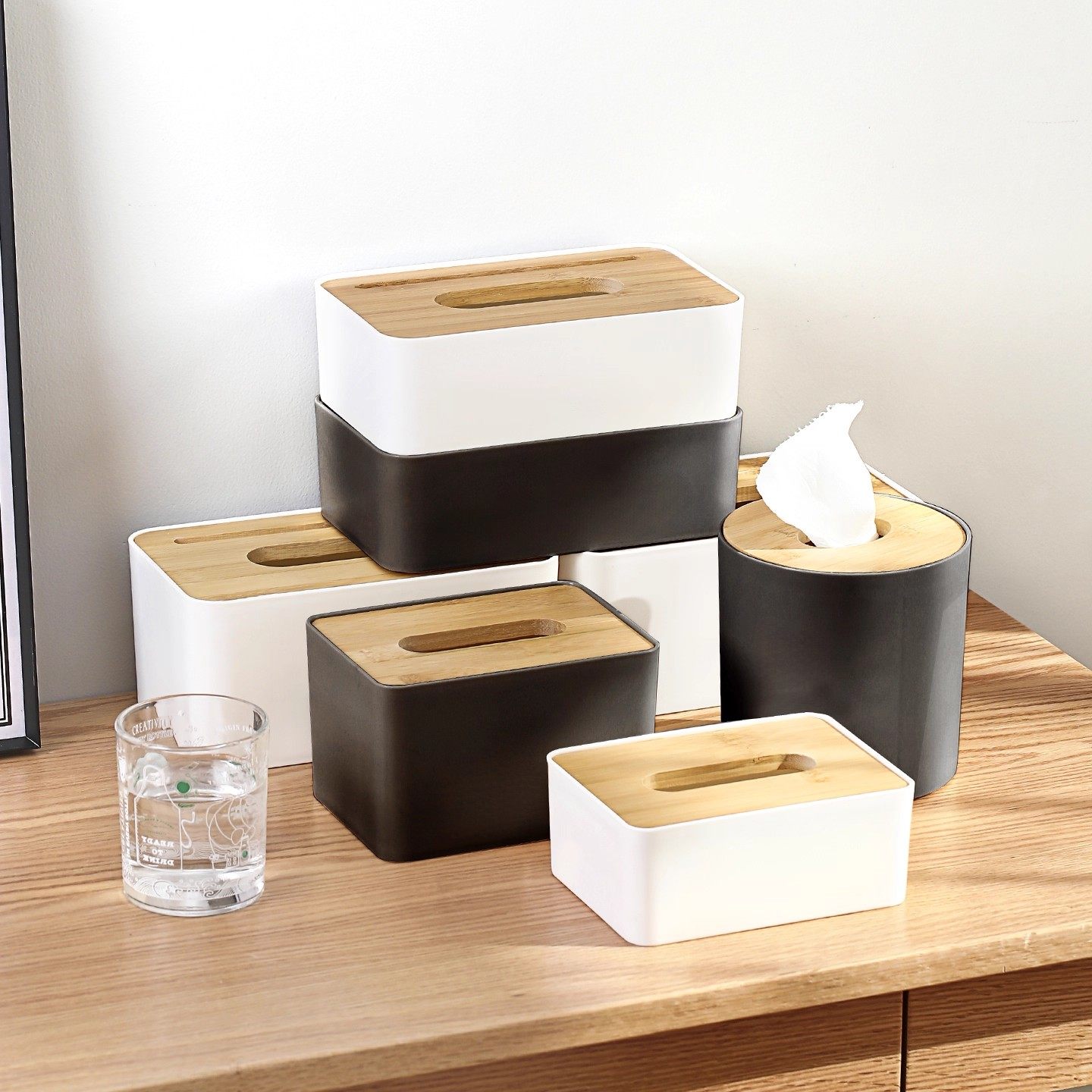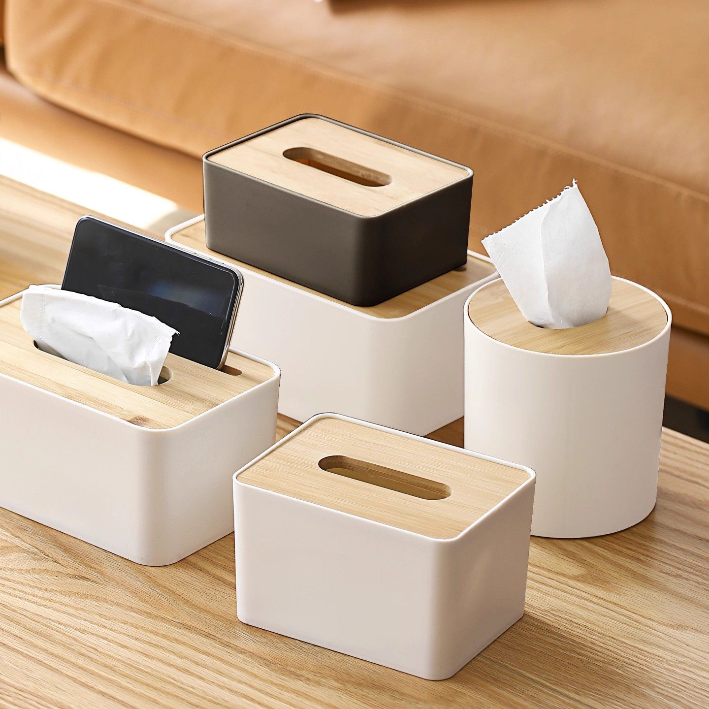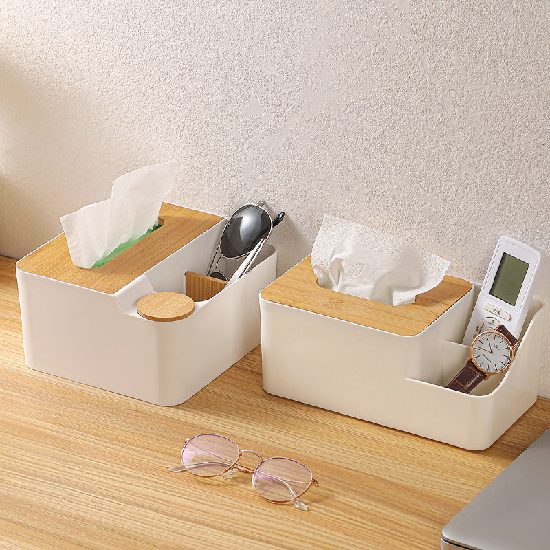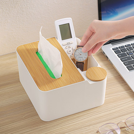 天然竹木纸巾盒客厅桌面抽纸盒家用遥控器整理一体多功能收纳盒子