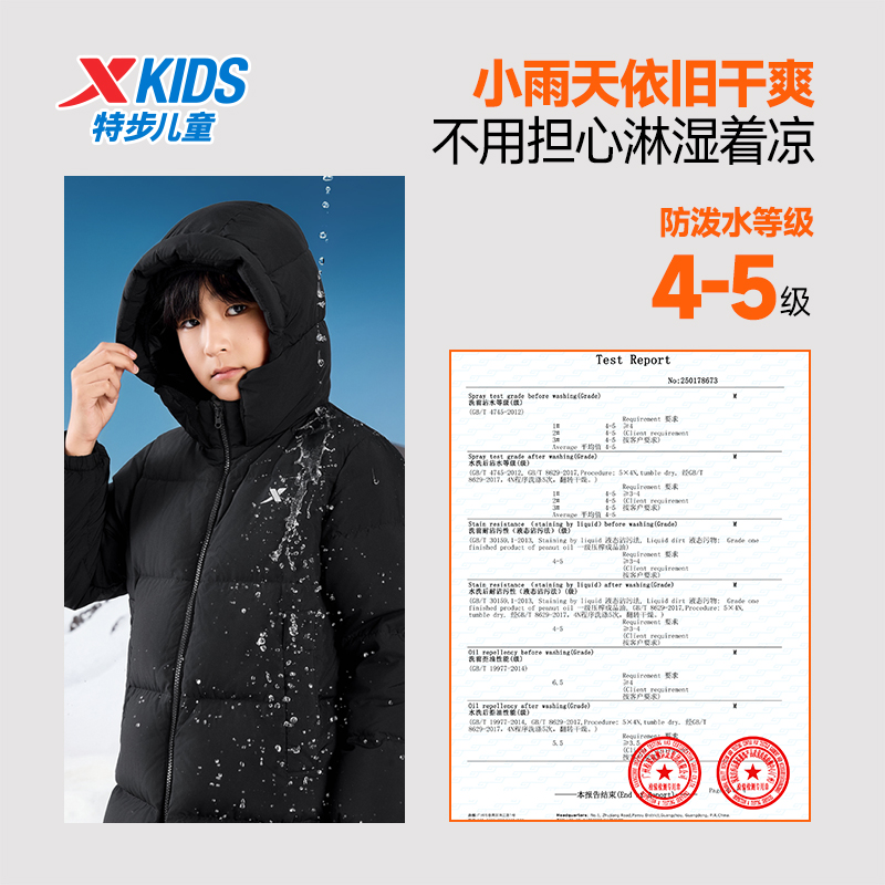 特步童装冬季新款正品女童加厚保暖中长款羽绒服男童休闲防风外套
