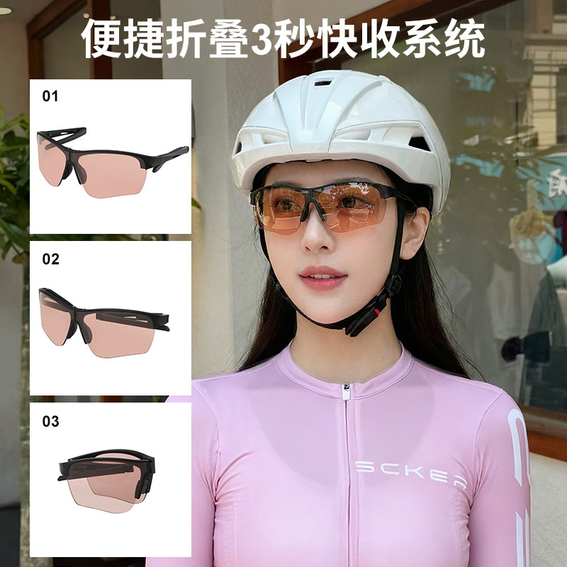 镜音骑行眼镜女户外运动折叠墨镜防晒防风跑步变色护目镜日夜两用