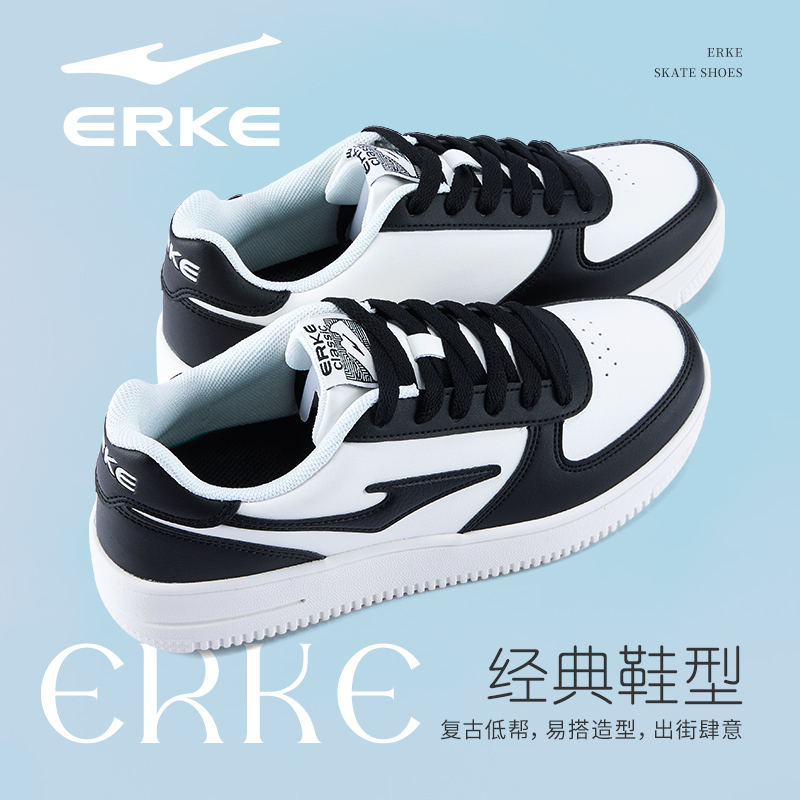 鸿星尔克运动鞋女鞋2025新款初中学生黑白熊猫鞋皮面防水休闲鞋子