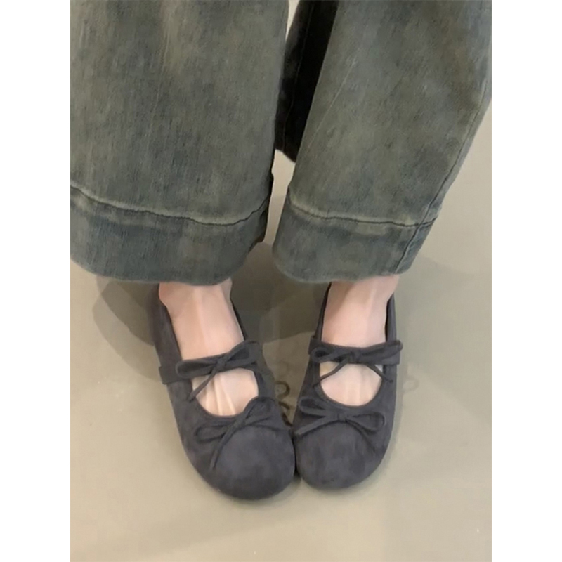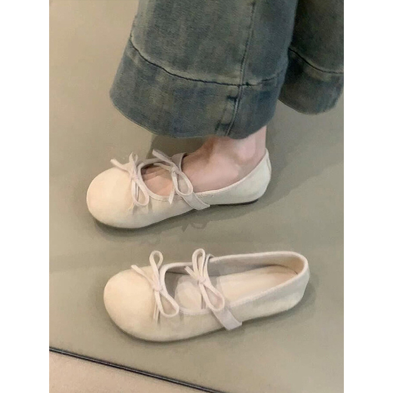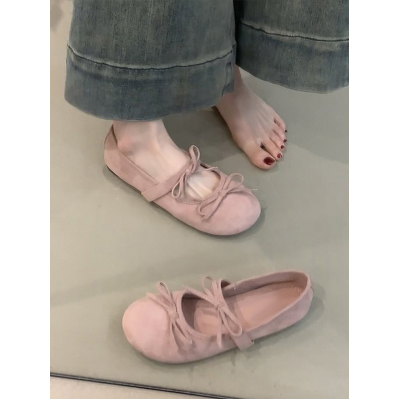 牛皮版~真皮平底蝴蝶结芭蕾单鞋女法式玛丽珍晚晚鞋内增高圆头