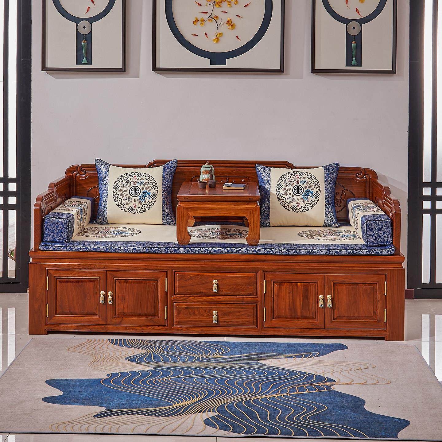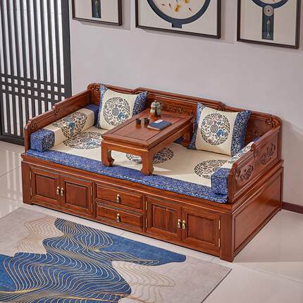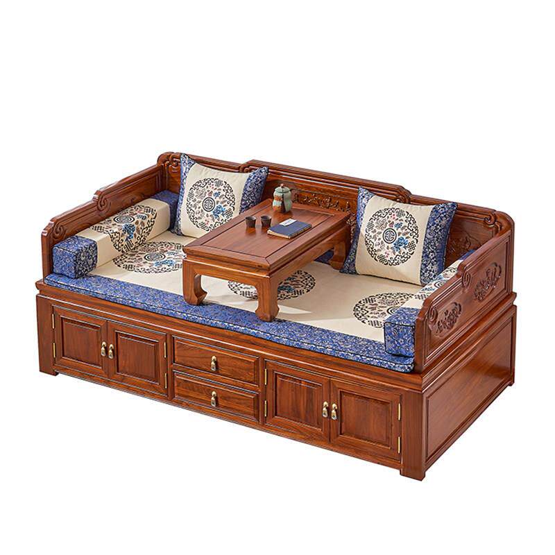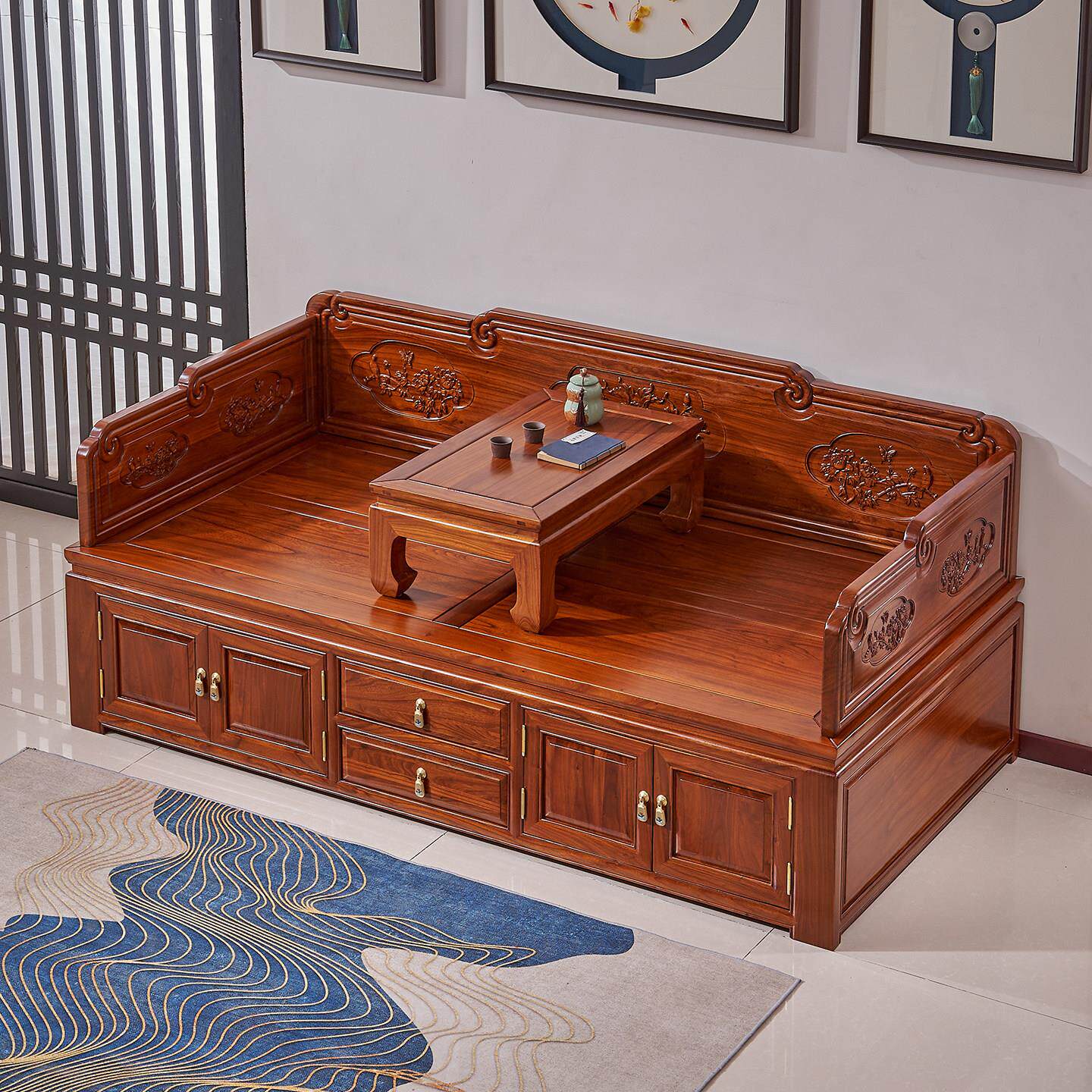 小户型罗汉床新中式实木箱体沙发老榆木罗汉床榻原木覆古客厅家俱