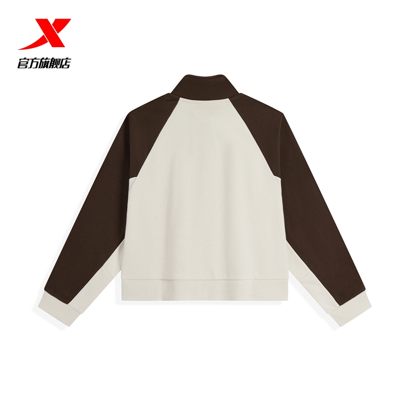 特步立领加绒卫衣女2024冬新款半拉链保暖运动套头衫976428920272