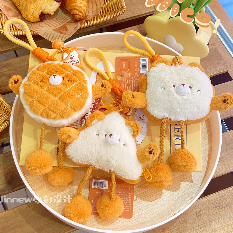 Jinnew 小熊面包屋抽拉毛绒挂件可爱卡通食物钥匙扣书包挂饰礼品