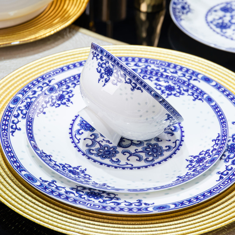 2025新款景德镇青花玲珑骨瓷餐具
