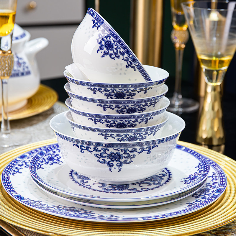 碗碟套装家用2025新款景德镇青花玲珑骨瓷餐具陶瓷碗盘筷套装乔迁