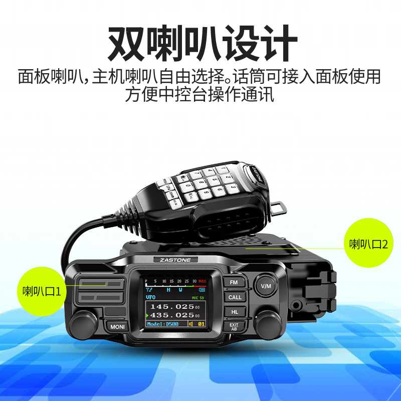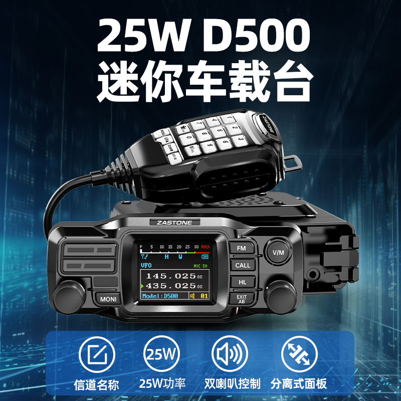 即时通D500车载对讲机UV双段25W中文菜单面板分离双喇叭迷你车台