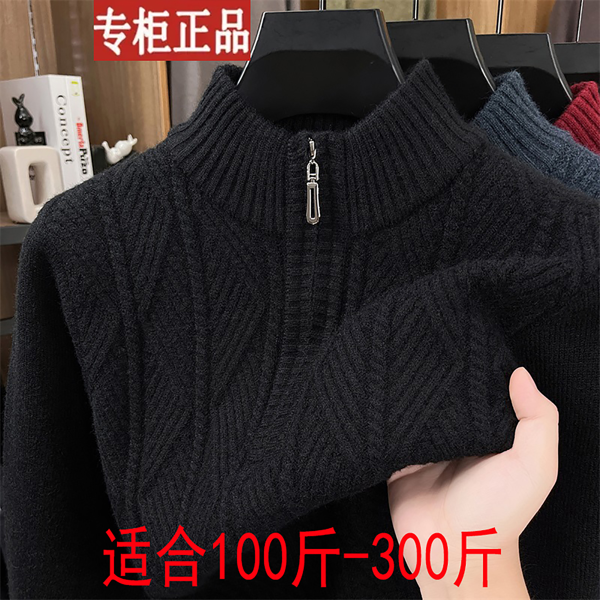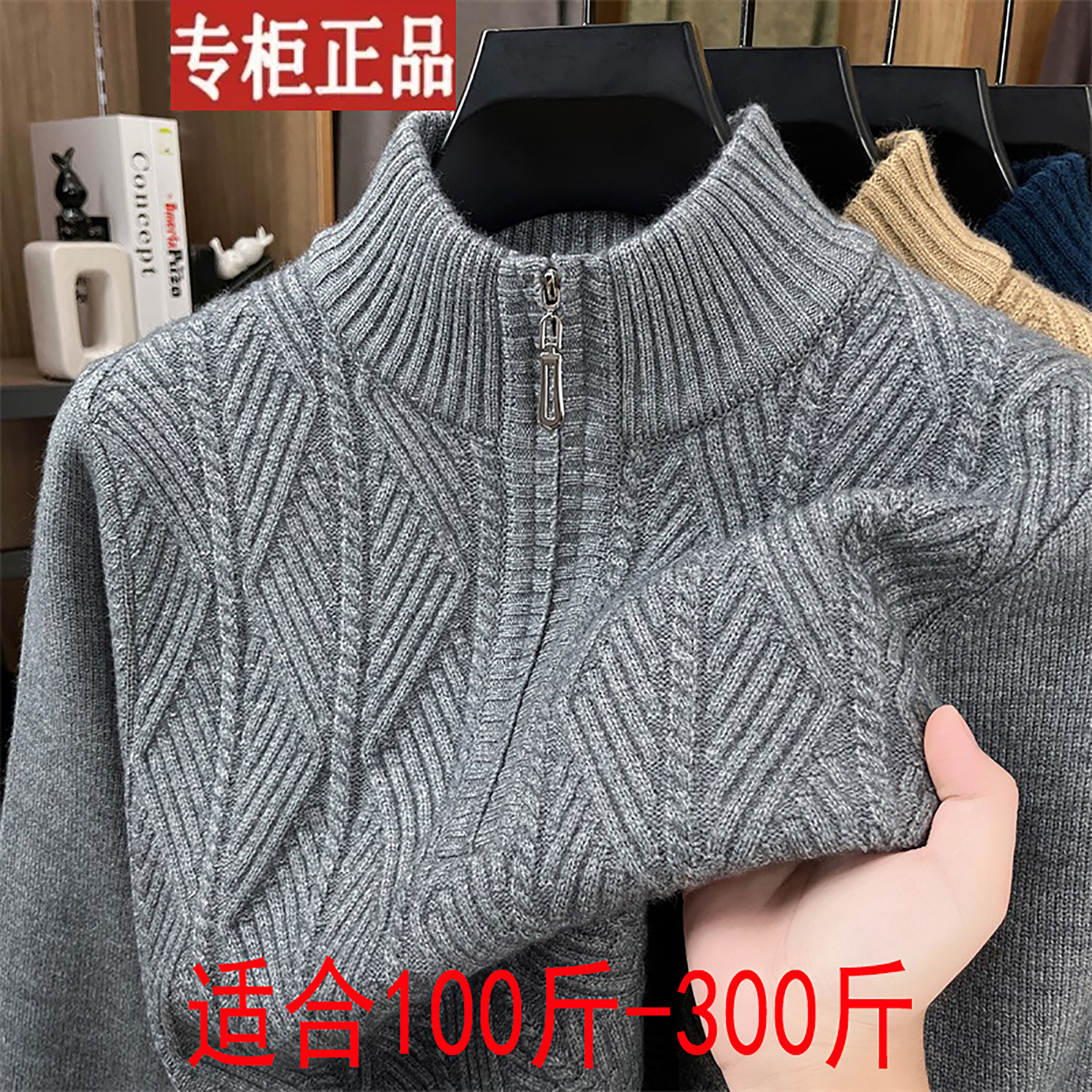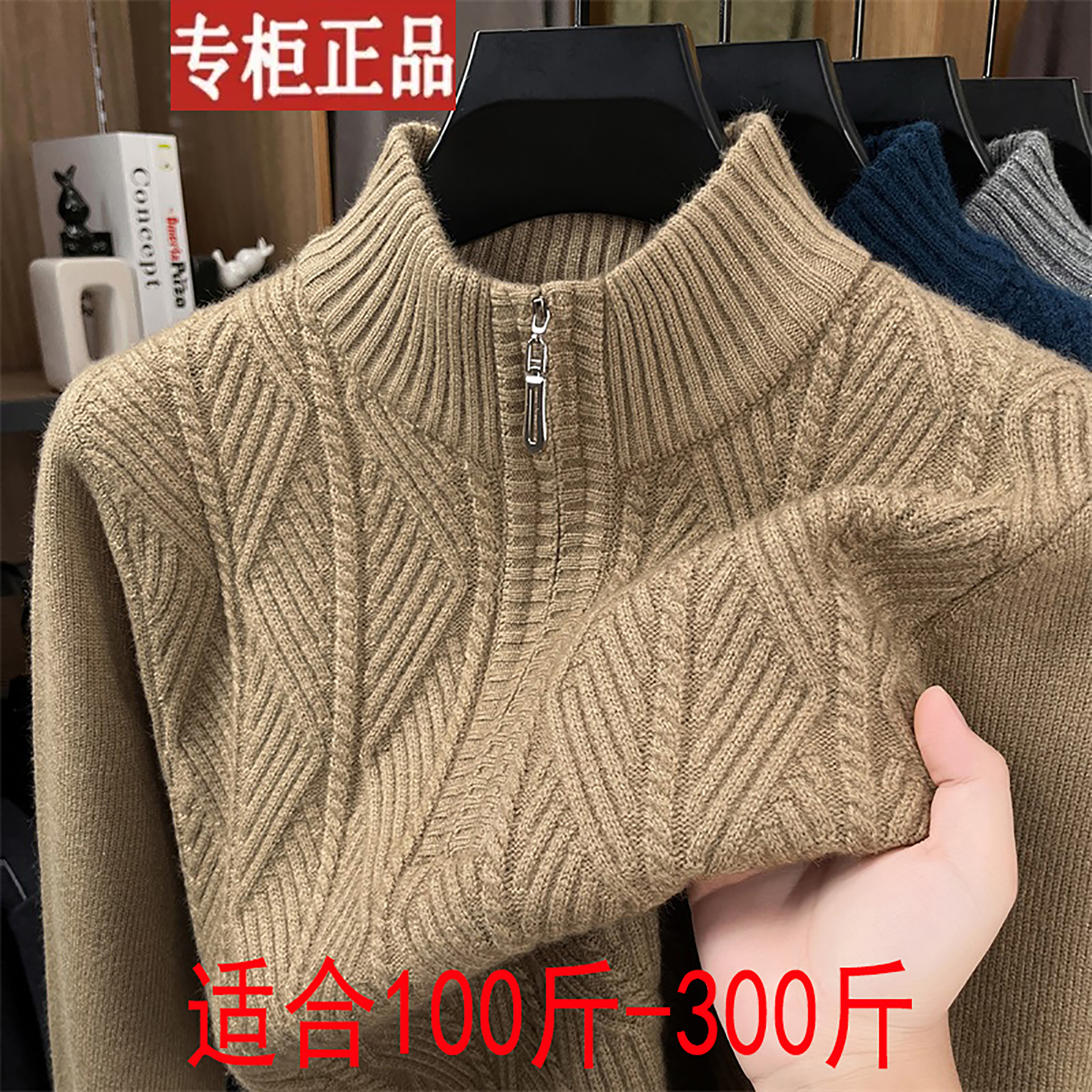 秋冬季100%羊绒衫男士加厚拉链高领毛衣扭花针织羊毛衫保暖爸爸装