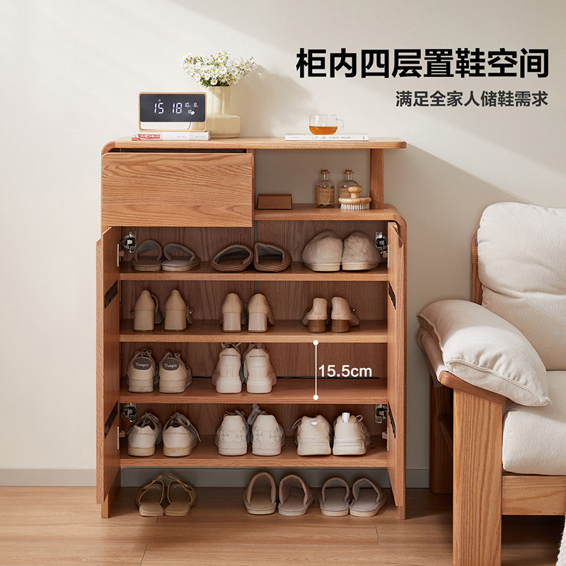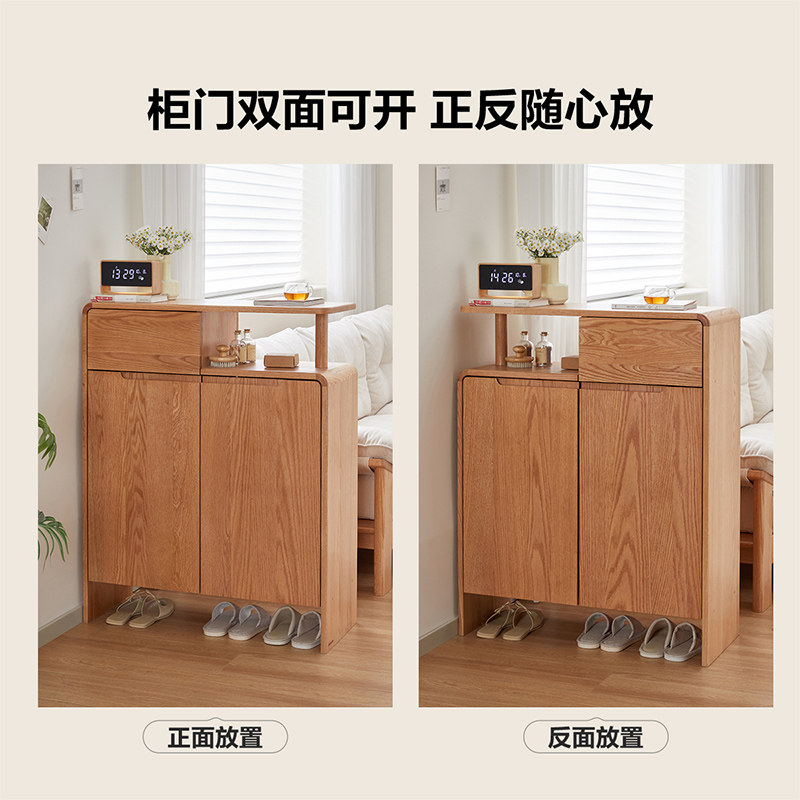 全友家居原木风客厅小户型实木鞋柜入户玄关隔断储物柜