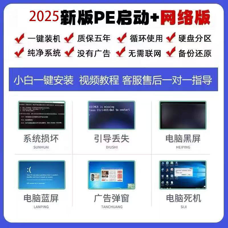 电脑重装系统u盘win10/11/7/XP正版一键安装PE启动纯净旗舰专业版