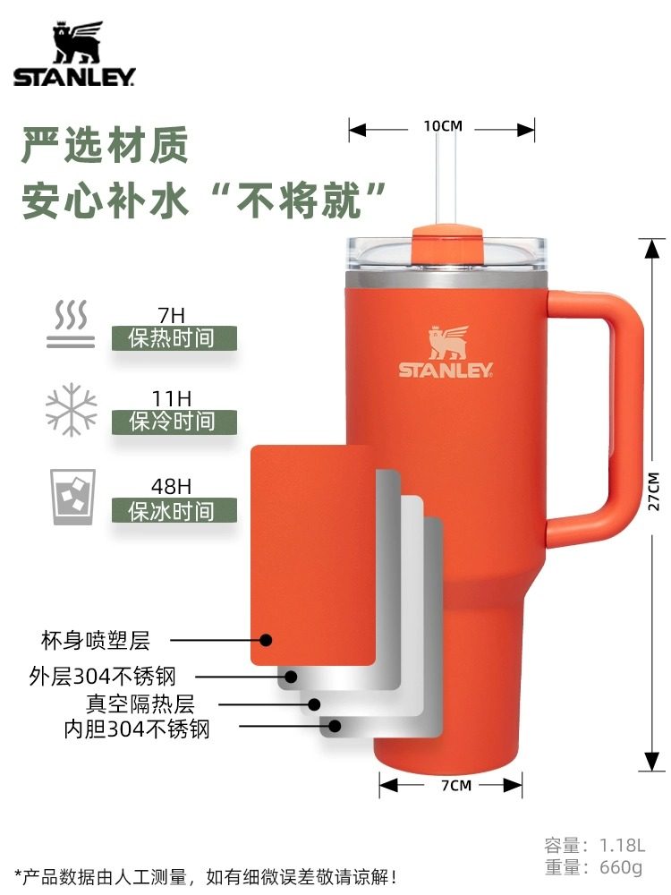 网红冰霸杯STANLEY春夏新品高颜值不锈钢真空保温大容量吸管把手
