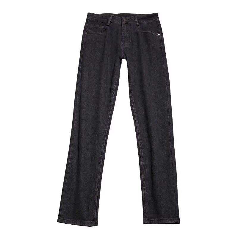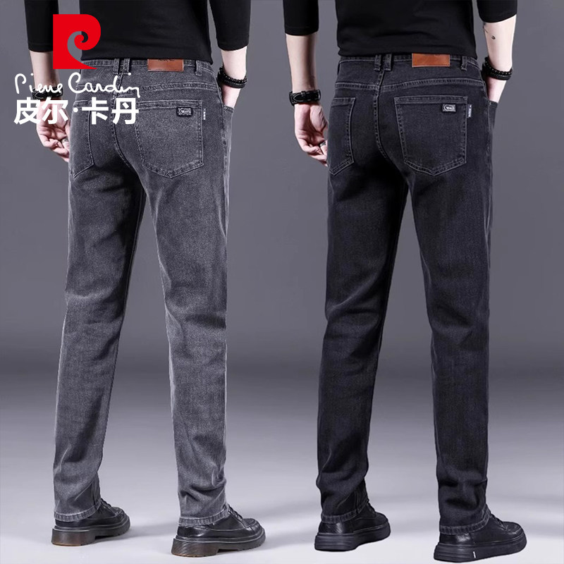 皮尔卡丹牛仔裤男士2025秋冬新款烟灰色加绒直筒修身休闲厚款裤子