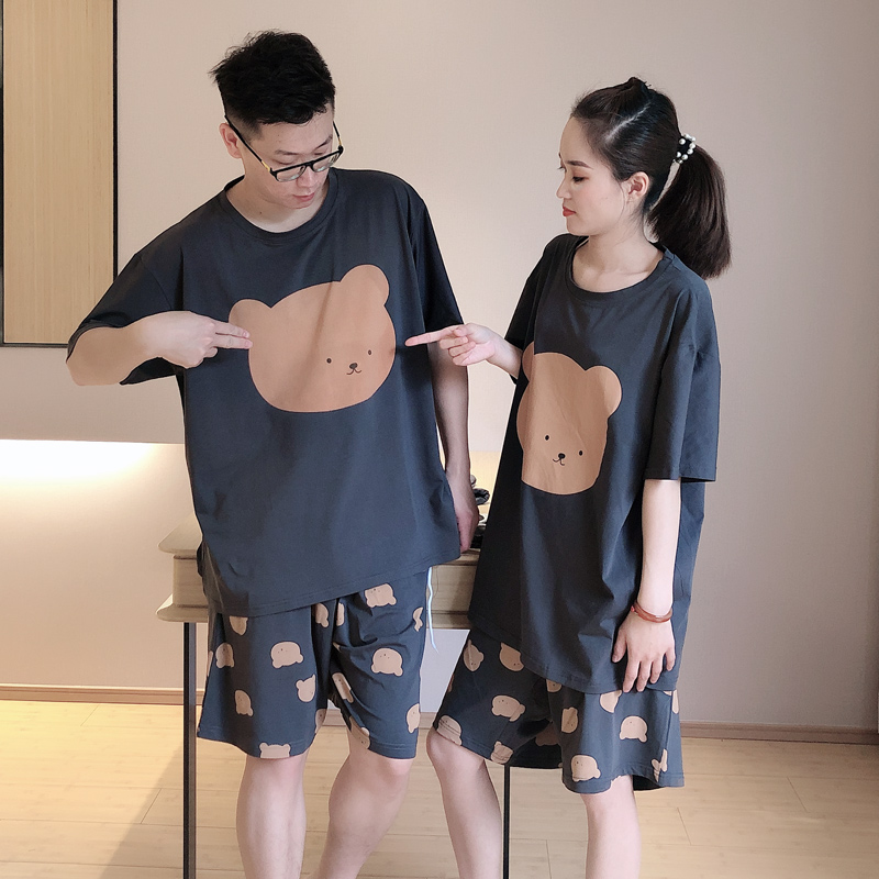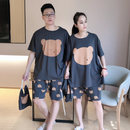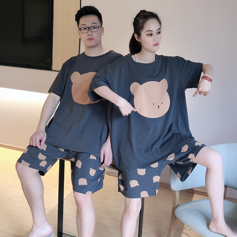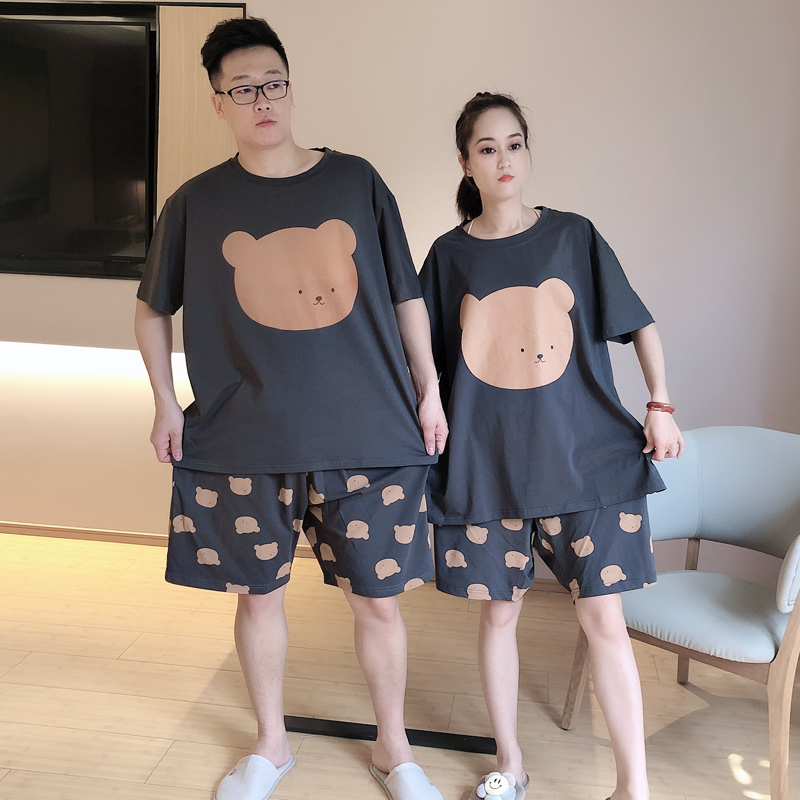 睡衣网红爆款2025夏款时尚洋气纯棉短袖大码200斤情侣家居服套装