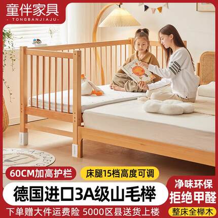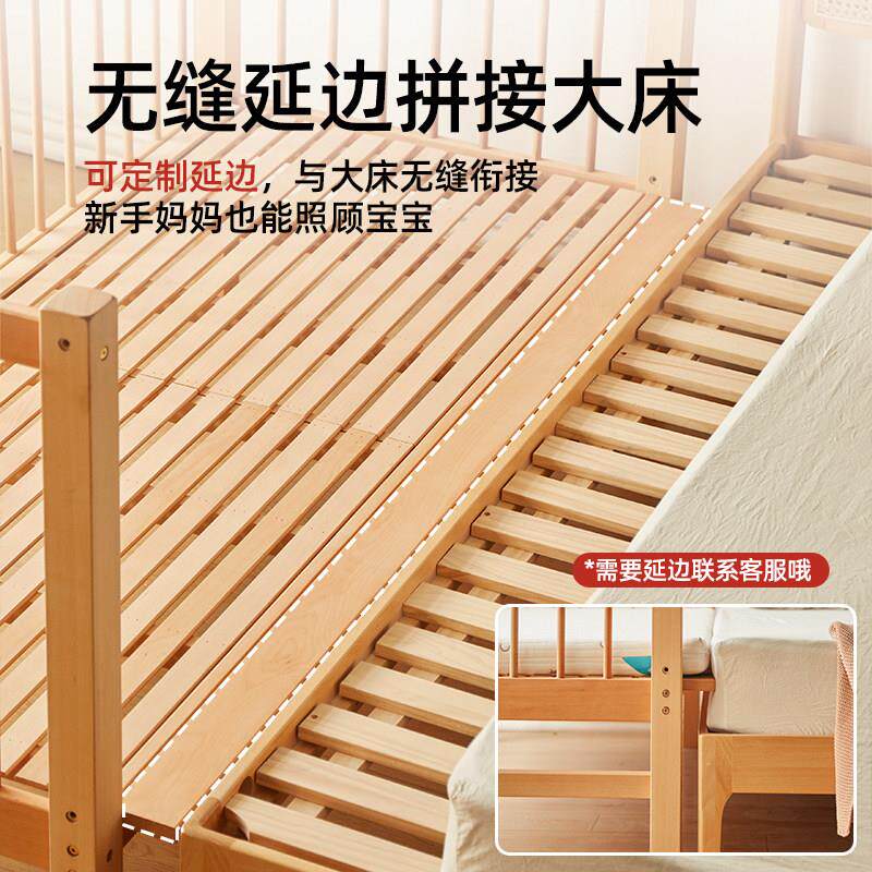 儿童拼接床榉木加宽床边拼接大床宝宝高护栏单人床实木小床婴儿床
