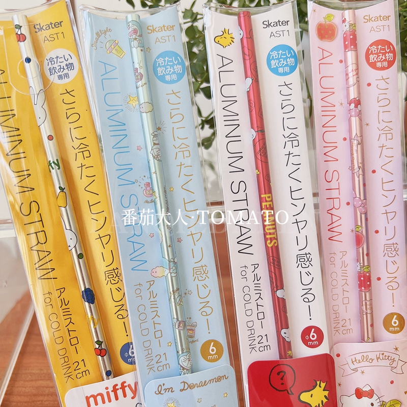 现货日本米菲Kitty史努比卡通铝制环保饮料果汁可重复使用吸管