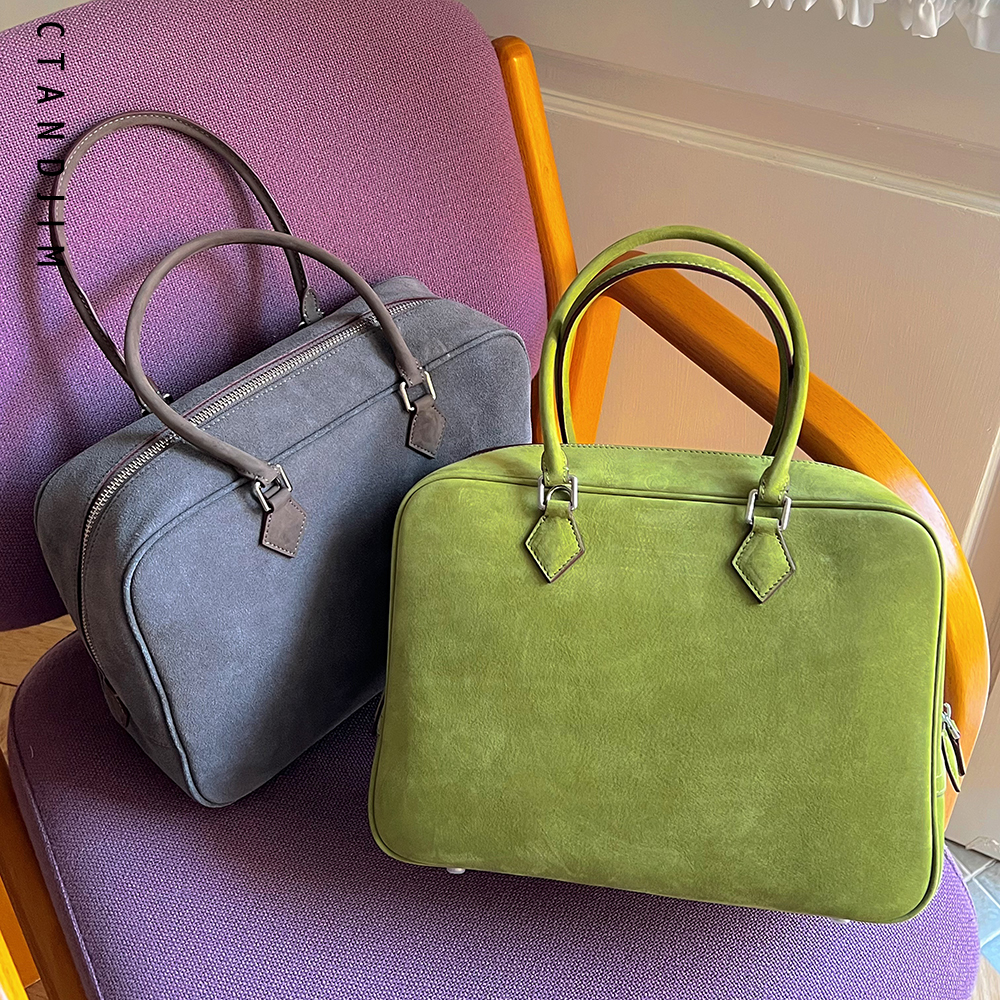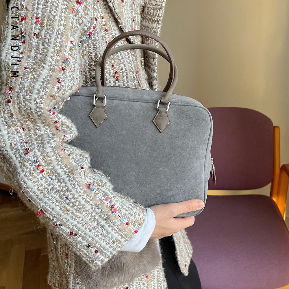 CTANDJIM典藏羽毛包保龄球包小方包手提包复古公文包牛皮/羊皮