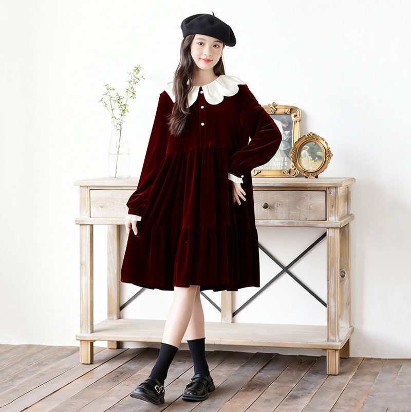 女童连衣裙秋冬新款大童丝绒甜美红色新年圣诞公主裙加绒儿童裙子