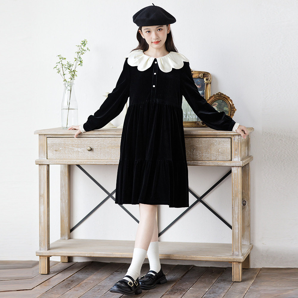 女童丝绒连衣裙秋冬裙子加绒
